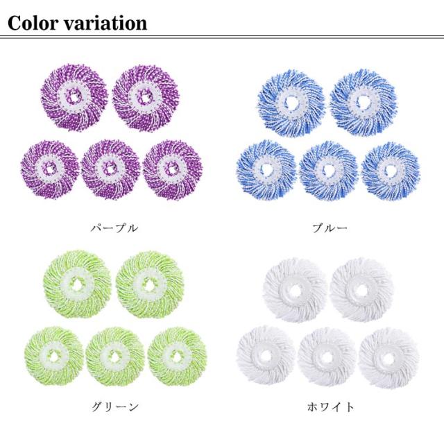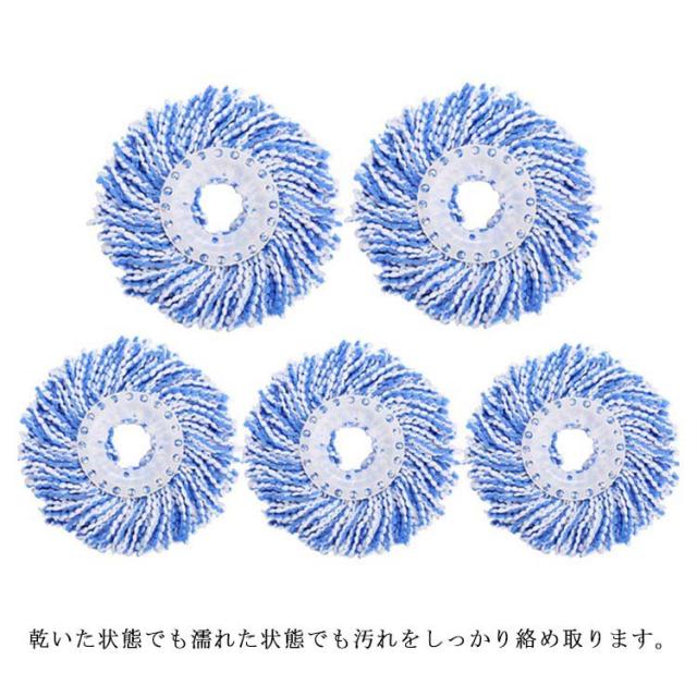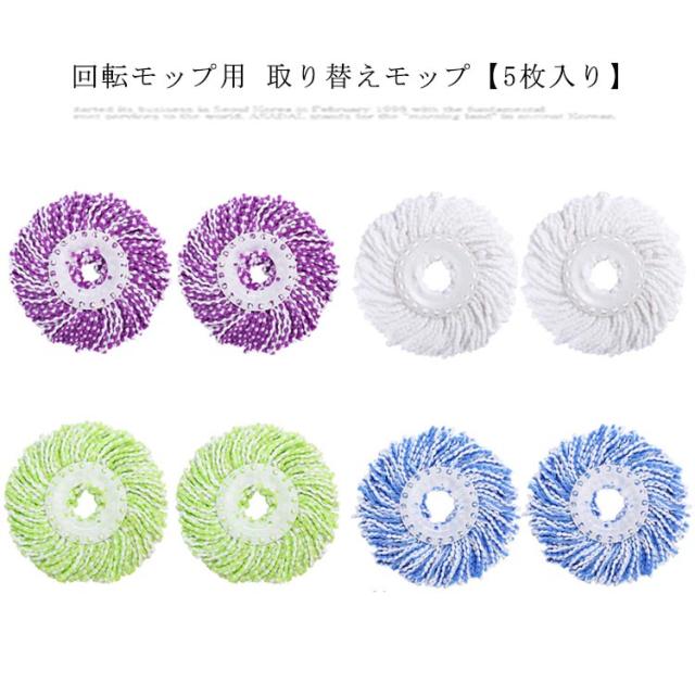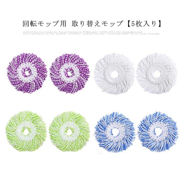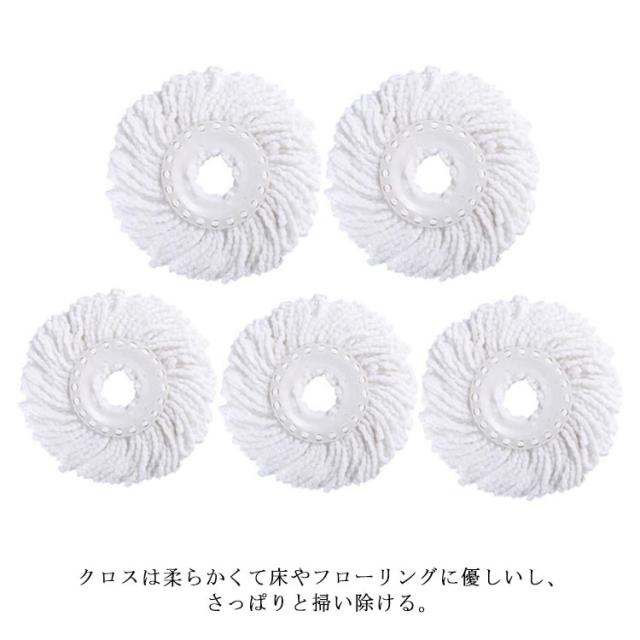 回転モップ用 取り替えモップ【5枚入り】マイクロファイバー モップ 回転 汎用 スペアモップ スペアモップ スペアヘッド クロス 交換用 挟み部分直径16cm 丸型