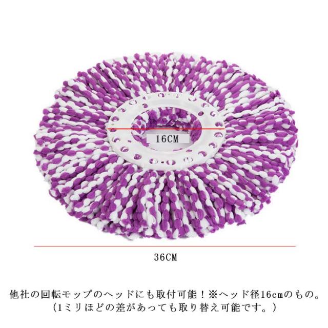 | ★ご購入前に必ず図のようにサイズを測ってください。 クロスは柔らかくて床やフローリングに優しいし、さっぱりと掃い除ける。 吸水力、脱水力に優れたマイクロファイバーモップ。 乾いた状態でも濡れた状態でも汚れをしっかり絡め取ります。 他社の回転モップのヘッドにも取付可能!※ヘッド径16cmのもの。(1ミリほどの差があっても取り替え可能です。) | |