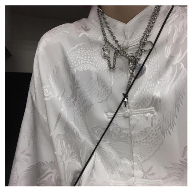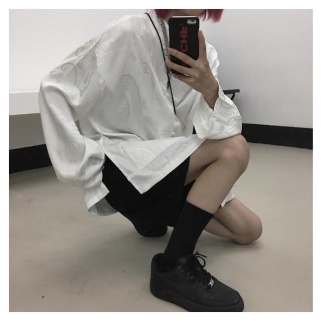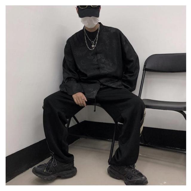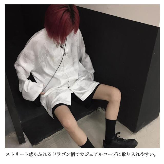 | トレンドのチャイナ風バンドカラー長袖シャツ。 ストリート感あふれるドラゴン柄でカジュアルコーデに取り入れやすい。 フロントボタン仕様なので軽い羽織としてもお使いいただけます。 身体を包み込むゆったりとしたサイズ感が、今年らしい着こなしをアシストします。 男女兼用のビッグシルエットでペアルックにもおすすめ。 | |