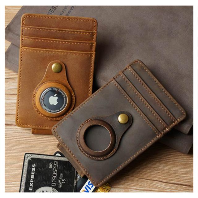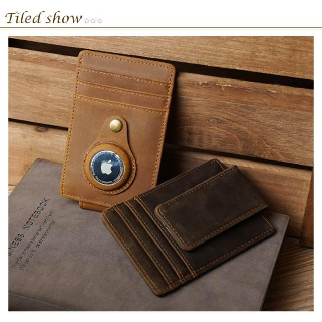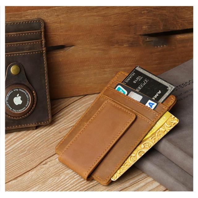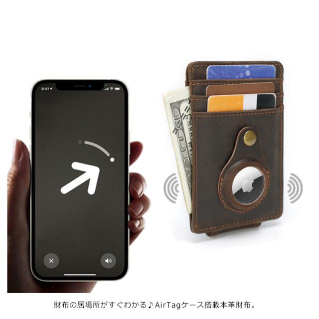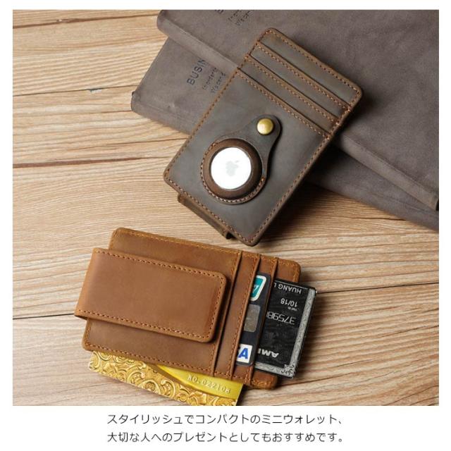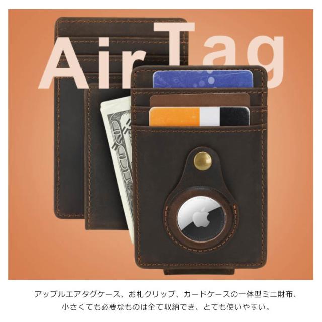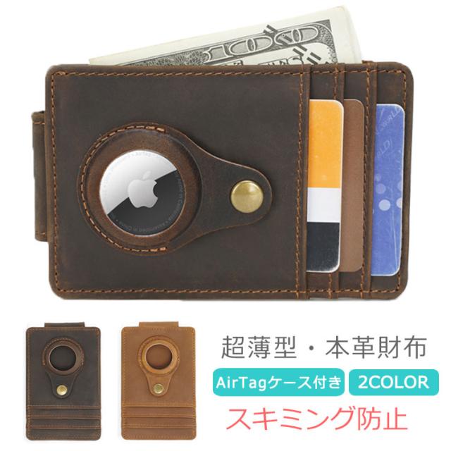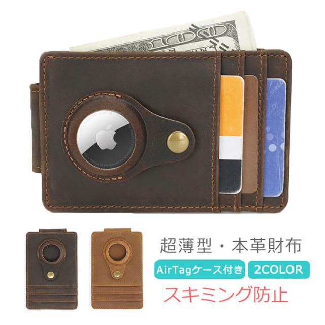 AirTagケース付き 財布 本革 カードケース メンズ 薄型 ミニ財布 マネークリップ レザー スリム 大容量 送料無料 FRID 磁石防止 紛失防止 ギフト