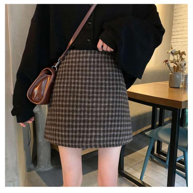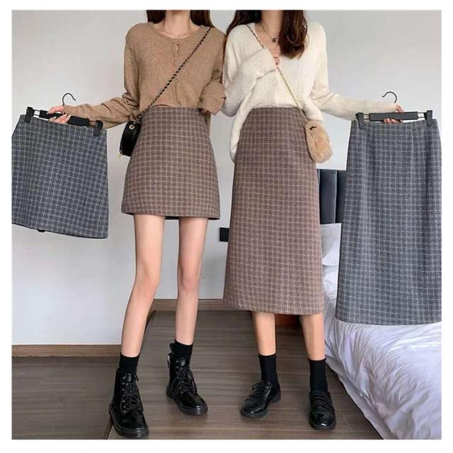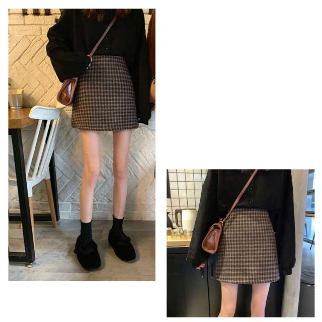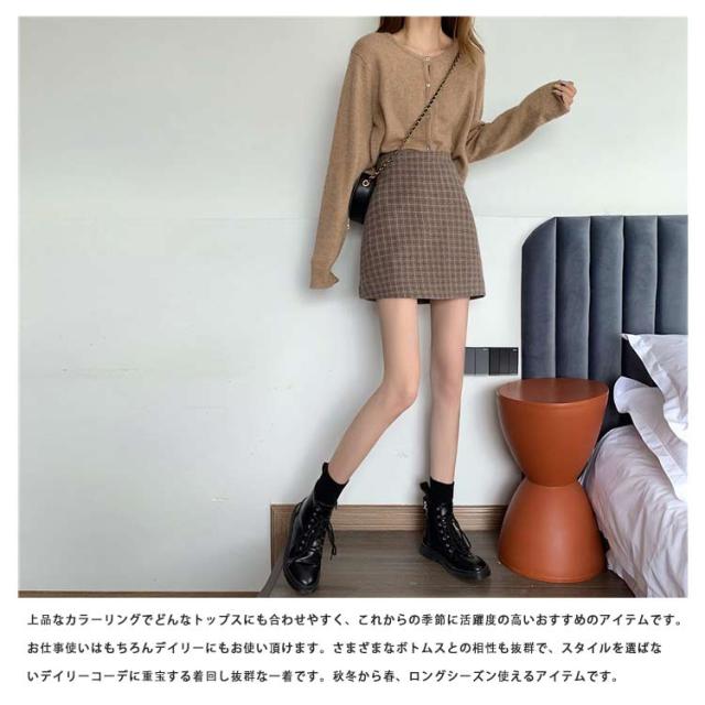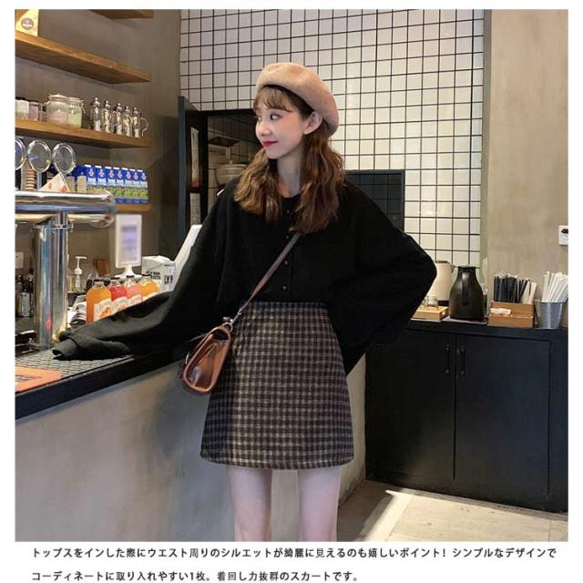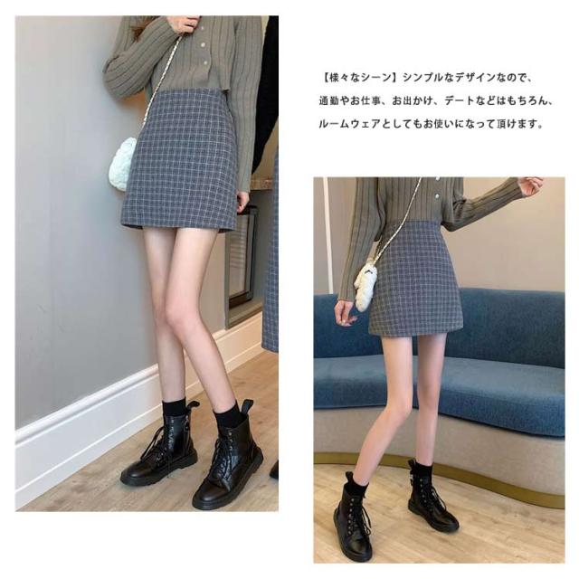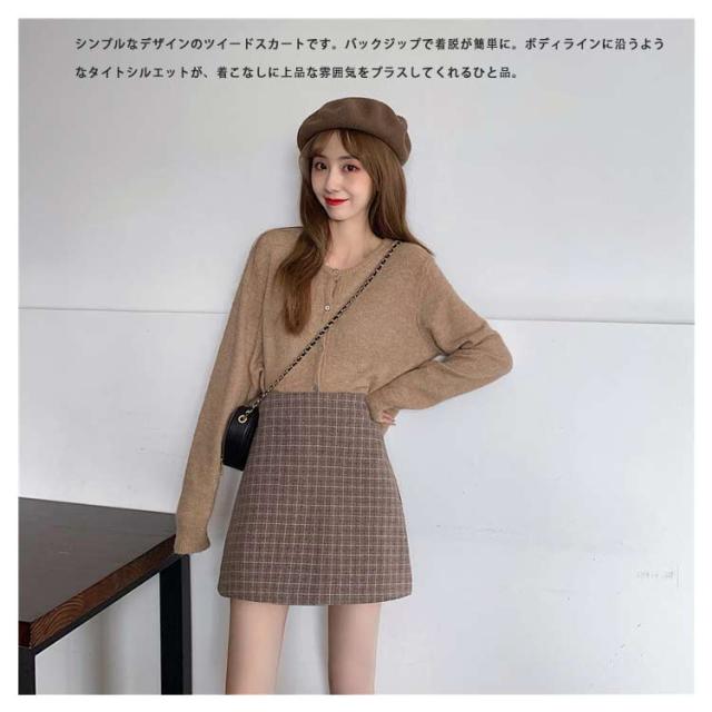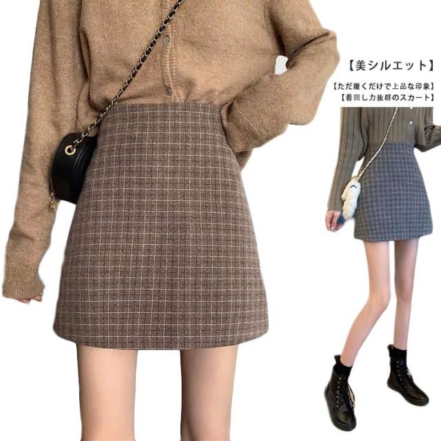 ツイードスカート タイトスカート ミニ チェック 春 秋冬 大きいサイズ インナー付きハイウエスト ショート丈 起毛 ボトムス おしゃれ 20代 30代 40代 50代
