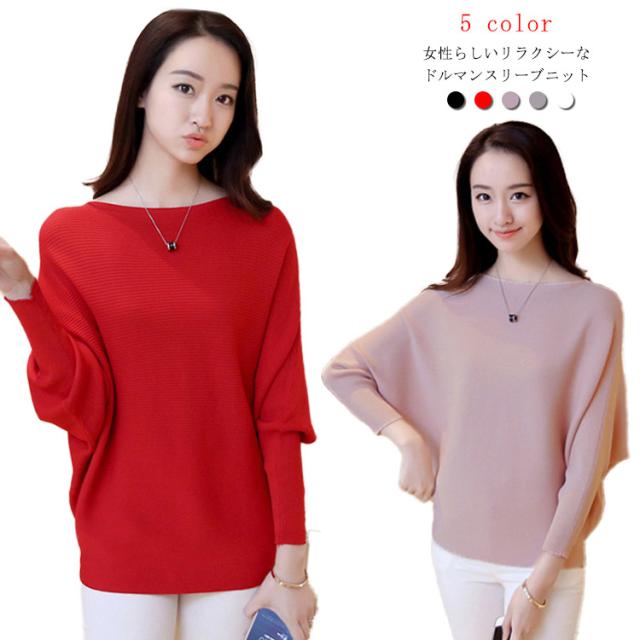 ニット セーター トップス プルオーバー ニットセーター 長袖 ドルマンニット セーター ドルマン ニット ゆったり リブ リブニット 長袖 キレイめ 無地 春 秋 冬 きれいめ ニットウェア ドルマンスリーブ ボートネック ニットソー 体型カバー