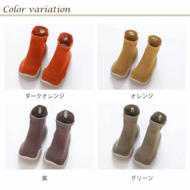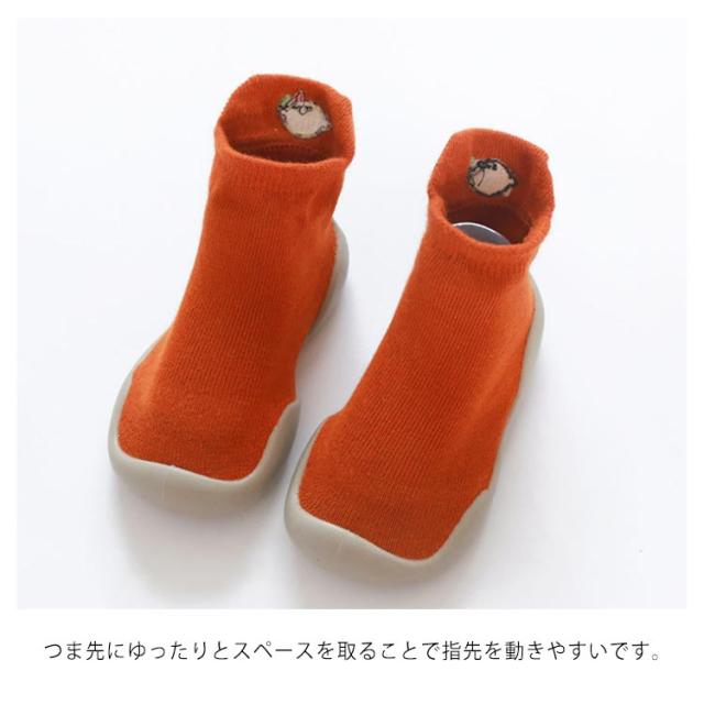 | よちよち歩きの赤ちゃんを応援!履きやすいソックスシューズ♪ 足にフィットする柔らかいコットン素材を使用。 ソールがラバー製で高い滑り止め効果を期待できる。 つま先はラバー製でぶつかった時の衝撃をやわらげるため、指先を怪我から守ります! つま先にゆったりとスペースを取ることで指先を動きやすいです。 室内はもちろん、お出かけやスポーツなど幅広いシーンで活躍する。 外出時の防寒対策にも◎ | |