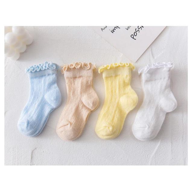 4足組 靴下 子供 ソックス 女の子 男の子 可愛い フットカバー メッシュ 通気性 脱げない ットン アウトドア 靴下 フリル キッズ 吸汗速乾 通気抜群 薄手 無地 柔らか 通学 通園 送料無料