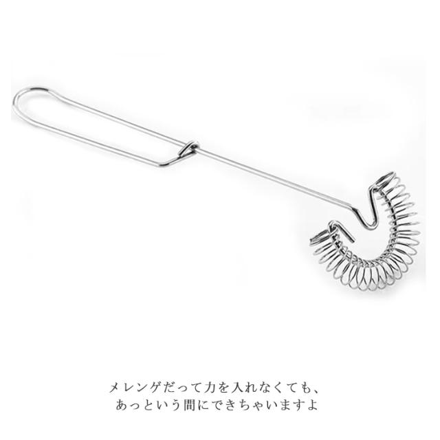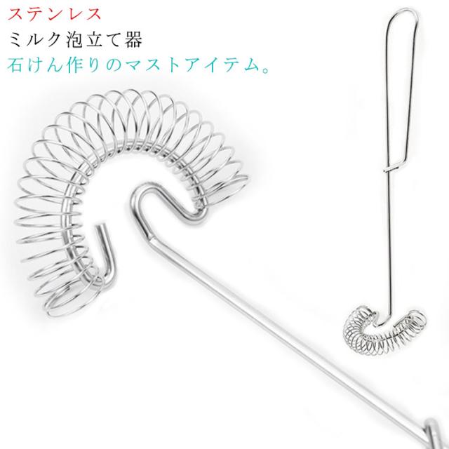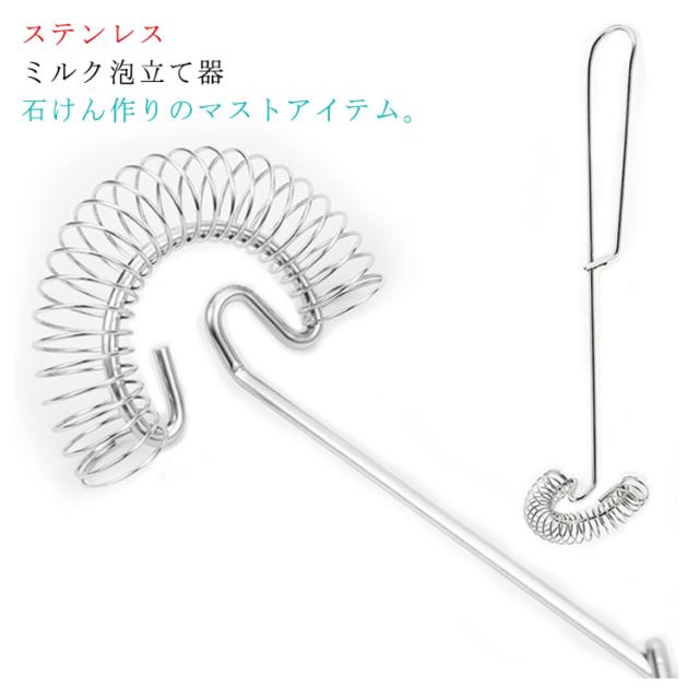 | 商品:ミルク泡立て器 素材:ステンレス サイズ:26.8*7.3*2.7cm 石けん作りのマストアイテム。 ほどよいカーブがボウルの側面にフィットし、生地につかる面が広いのでまんべんなく素早く攪拌できます。 メレンゲだって力を入れなくても、あっという間にできちゃいますよ | |
