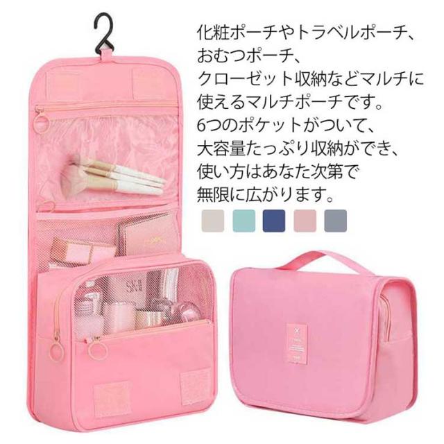 | 化粧ポーチやトラベルポーチ、おむつポーチ、クローゼット収納などマルチに使えるマルチポーチです。6つのポケットがついて、大容量たっぷり収納ができ、使い方はあなた次第で無限に広がります。 内側には3つのポケットと、メイン収納の脇に2つのサブポケット、さらにバック裏にもポケットがついているので、ブラシやコムなどのアイテムの収納場所にも困りません。内側の3つのポケットにはメッシュ素材とクリア素材を使用し、さっと取り出したいものや歯ブラシやメイクブラシなど通気性が欲しいものの収納できるようにしました。 持ち歩きの際に便利な持ち手、さらに収納可能なフックを付けて洗面所やクローゼット内での収納や利用が便利になっています。 カジュアルな旅行用の化粧ポーチは、はっ水のナイロン製です。水に強いから風呂やジムのバスルームにも気兼ねなく持ち歩くことができるオシャレな便利グッズです。 マジックテープで折りたたみできる薄型のバニティポーチは、旅行バッグのインナーケースやバッグインバッグとしてもご利用いただける収納用品です。 | |