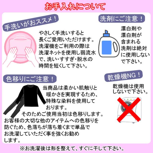 ※漂白剤や漂白剤が多く含まれる洗剤のご使用はお控えください。色落ちの原因となります。