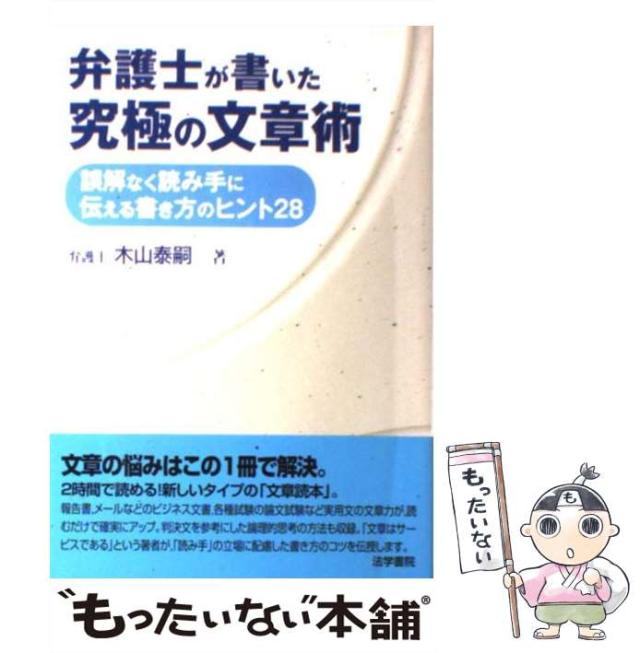 商品名:【中古】 弁護士が書いた究極の文章術 誤解なく読み手に伝える書き方のヒント28 / 木山 泰嗣 / 法学書院 [単行本]【メール便送料無料】