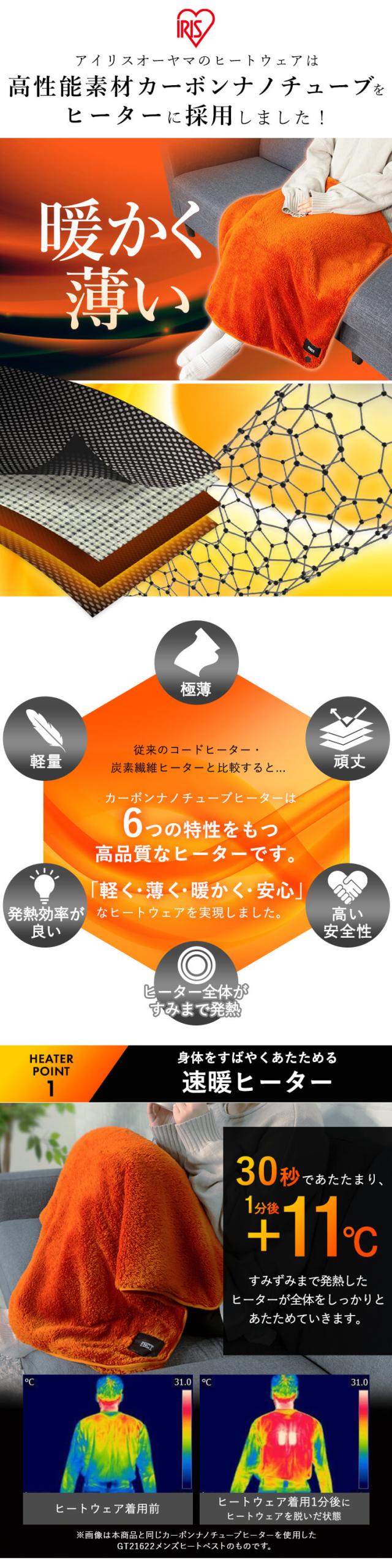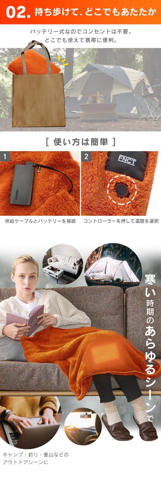 2way ヒートブランケット FC21702 全3色 ブランケット ひざ掛け 毛布 あったか 75×75cm 折りたたみ 収納袋付き ヒーター付き バッテリー別売り アイリスオーヤマ