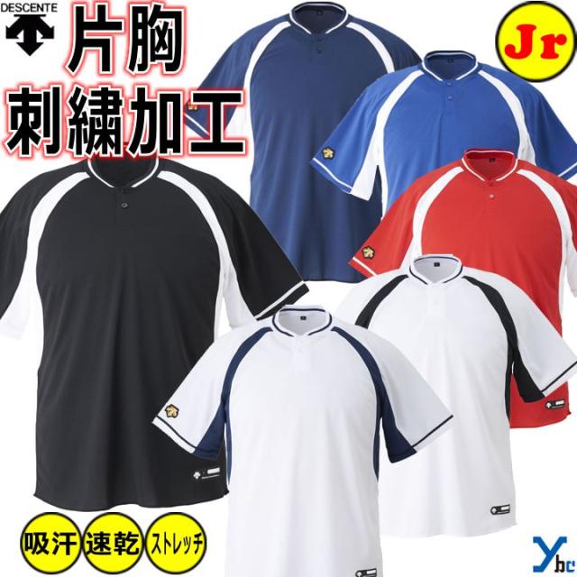【左片胸刺繍 袖刺繍加工 少年用 】 デサント 野球 ウェア 半袖 2ボタン BBシャツ JDB103B ユニセックス 刺繍 ジュニア用 吸汗速乾 ストレッチ お揃い 移動着 チームウェア ybc 2012 |