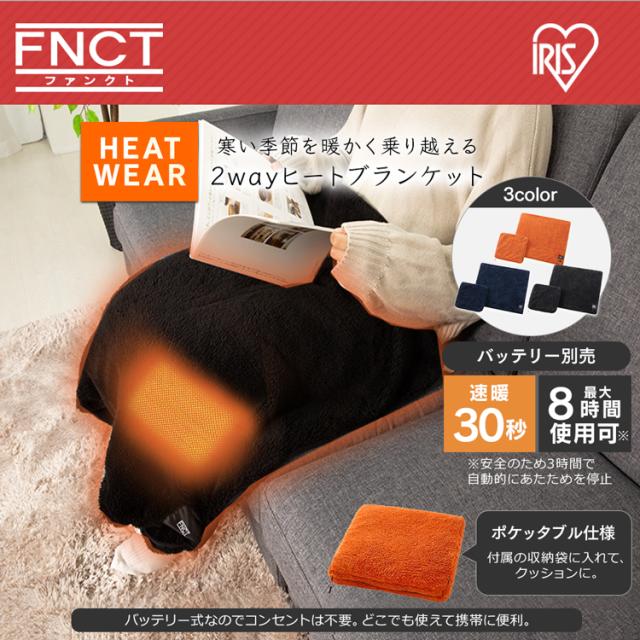 ブランケット ヒートブランケット 電気毛布 ひざ掛け ヒーター付き クッション FC21702 アイリスオーヤマ 2way ヒートクッション 毛布 あったか 75×75cm 折りたたみ 収納袋付き バッテリー別売り アウトドア 送料無料