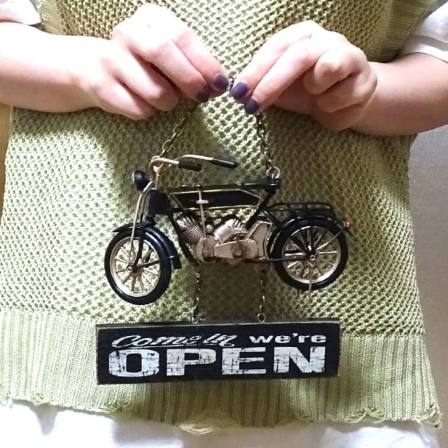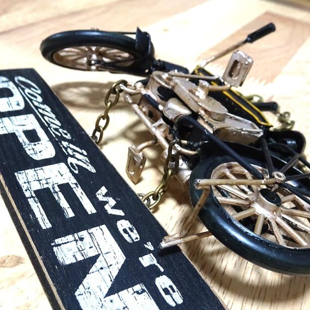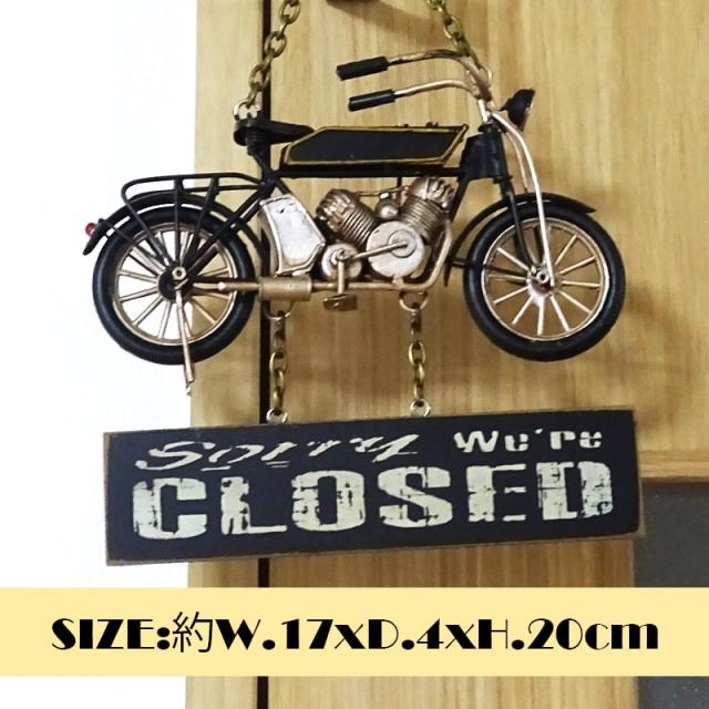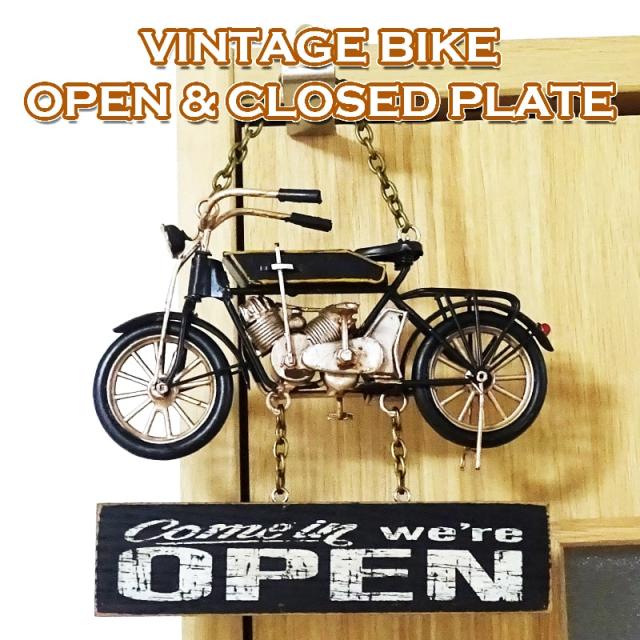 ブリキの素朴感が味のあるレトロでかっこいいバイクのOPEN&CLOSEのプラッケです。