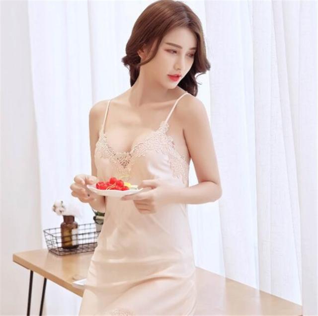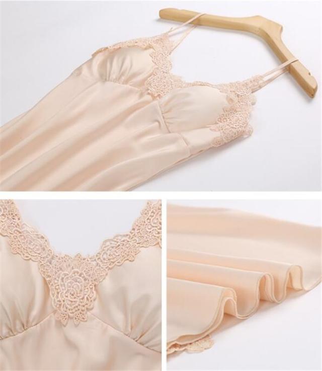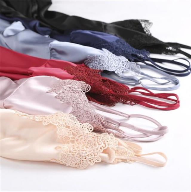 スリップ 滑るパジャマ キャミソール インナー ランジェリー ひざ丈 ミディアム丈 サテン調 レディース シンプル 無地 ルームウエア セクシーsy-002