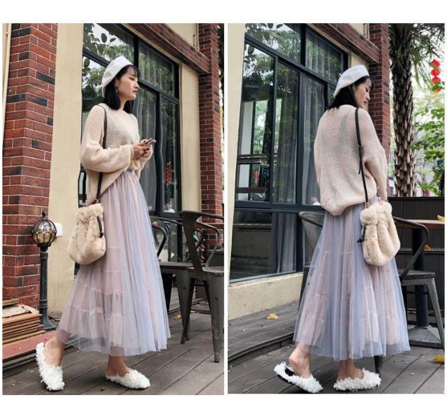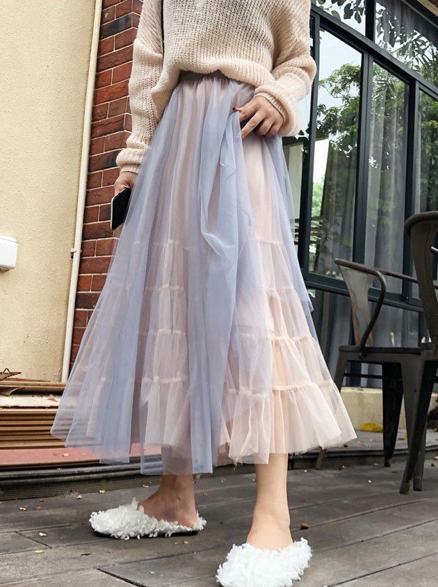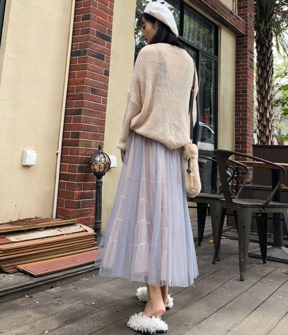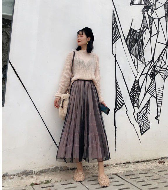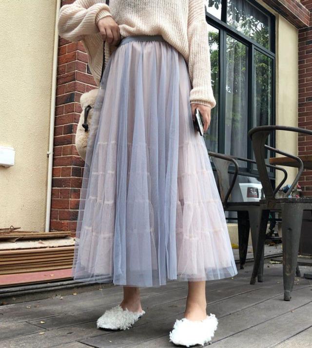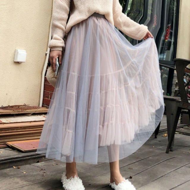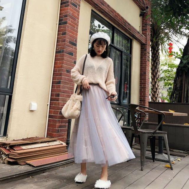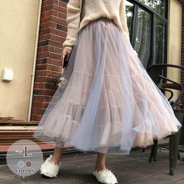 スカート 透け感 ロング丈 ロマンティック ふんわり レース 美人 可愛い ドライブ ガーリー ママスタイル フェミニン 休日スタイル /[pit77]