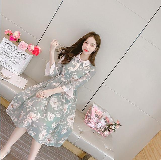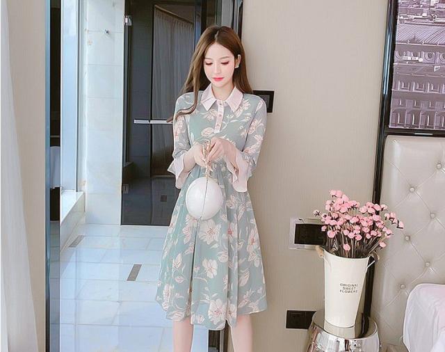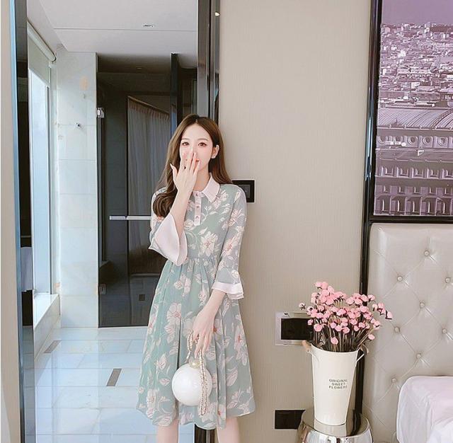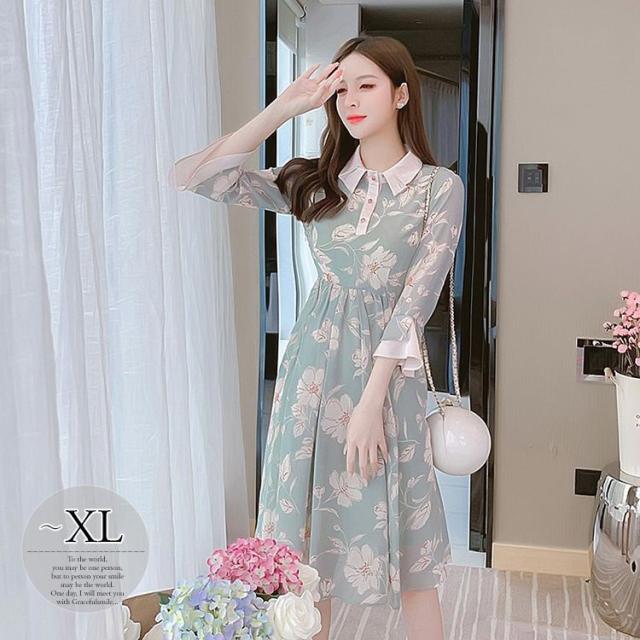 ワンピース 襟付き 花柄 袖フレア 総柄プリント デザインボタン お出かけファッション 女子旅 休日 女子会 キレイ目 デート きれいめ /[piw12]