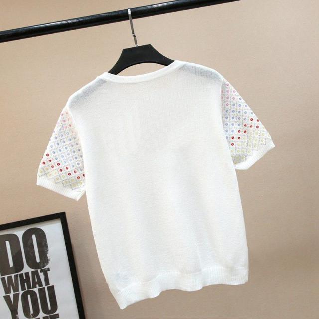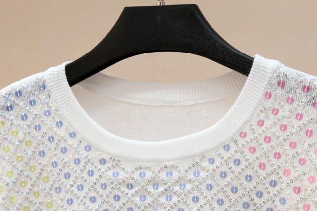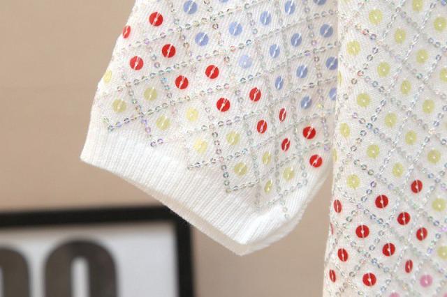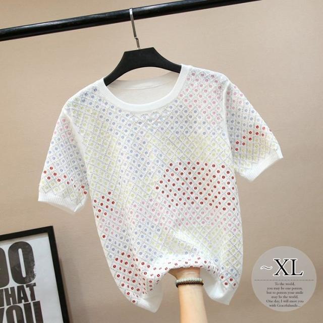 セーター ラウンドネック ダイアゴナル カラフル スパンコール サマーニット ママ 学校行事 女子旅 かわいい 食事会 女子会 可愛い 休日 /[piw46]