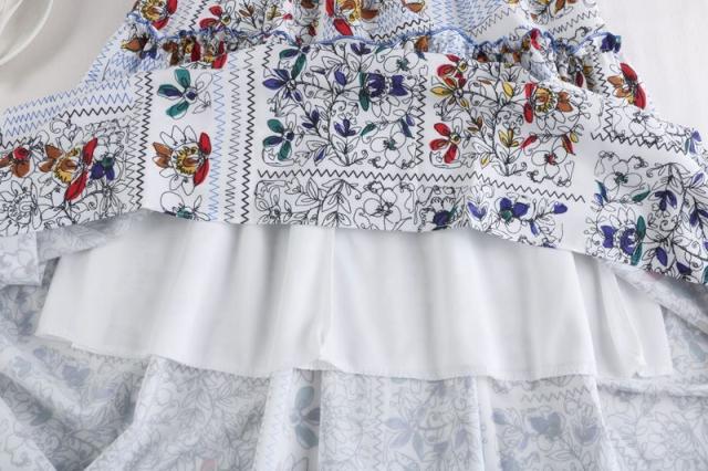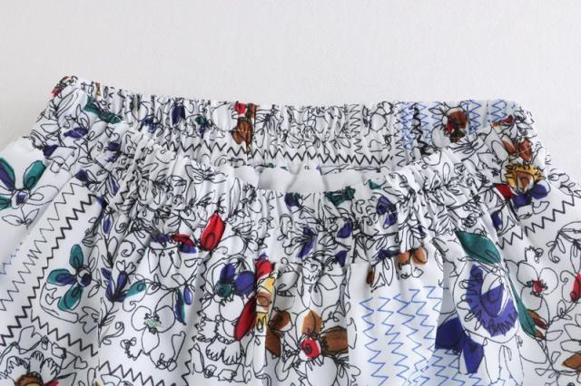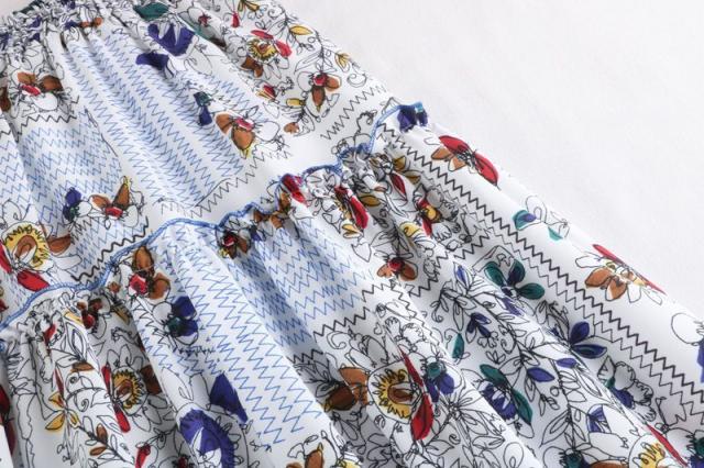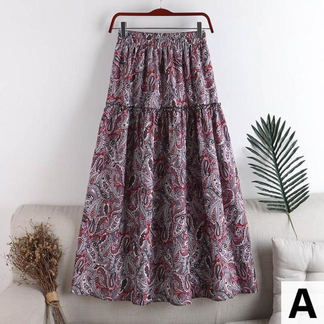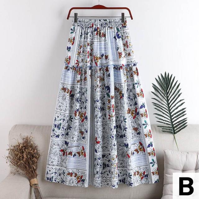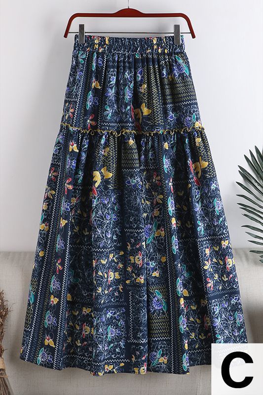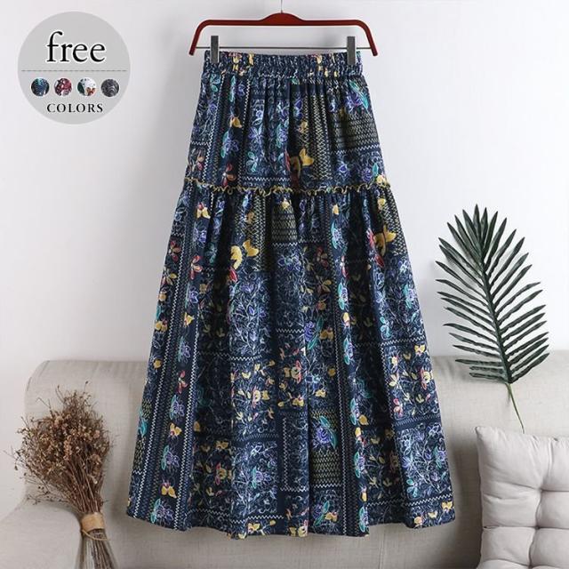 スカート ボトム フレアスカート とろみ Aライン ウエストギャザー ウエストゴム フリル フレア 総柄プリント ロングスカート /[piz63]