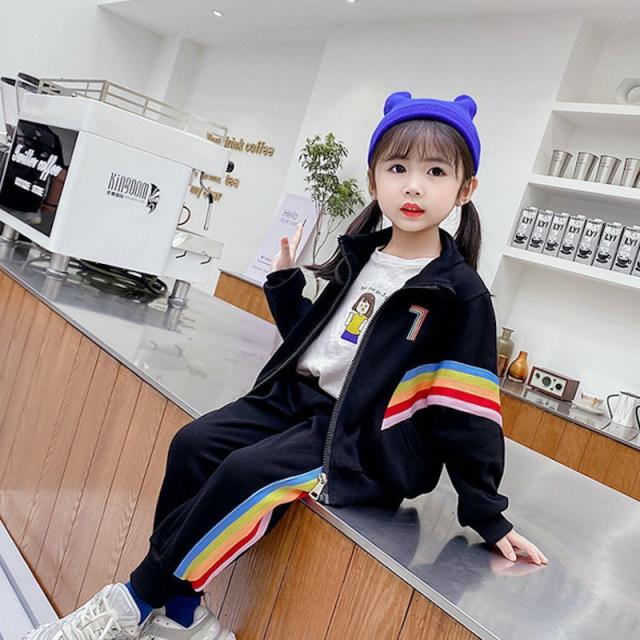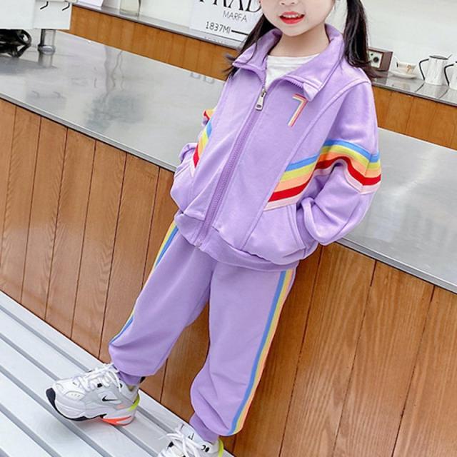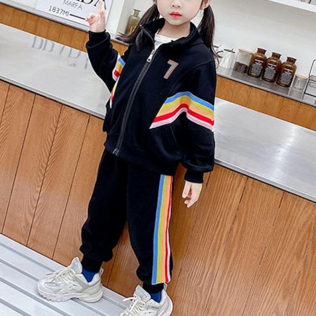 セットアップ 上下セット ジャージ ロングパンツ キッズ 子供服 女の子 男の子 長袖 ロゴ 虹 レインボー 長ズボン スウェット かわいい カジュア