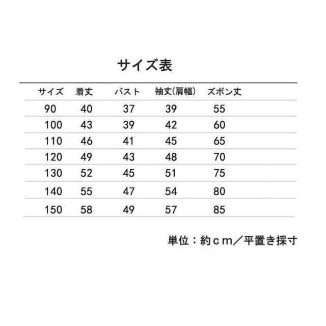 | サイズについての説明 | 子ども用の上下セットアップです。重ね着したように見えるトップスがおしゃれ。この組み合わせだけでバッチリ決まりますね♪【サイズについて】画像をご参照ください。 |