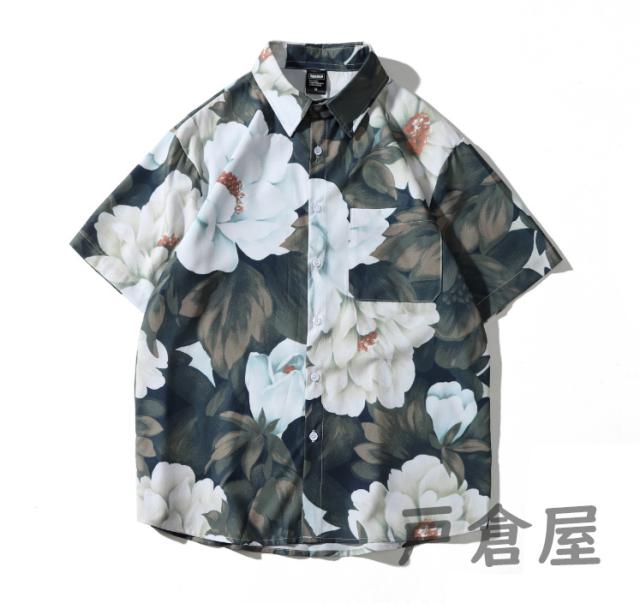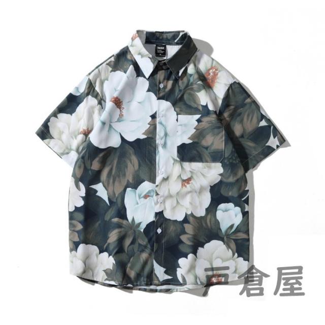 シャツ メンズ 花柄 半袖 アロハシャツメンズシャツ半袖開襟シャツ花柄ハワイプリント半袖シャツリゾート旅行コーデおしゃれ涼しい夏代 2021