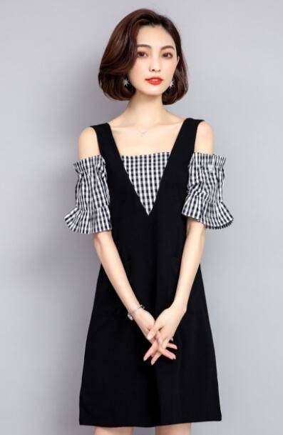 大きいサイズ ワンピース オフショルダー 膝丈 半袖 レディース 膝丈ワンピース フェイクレイヤード 肩出し 半袖ワンピース 夏物 チェック柄