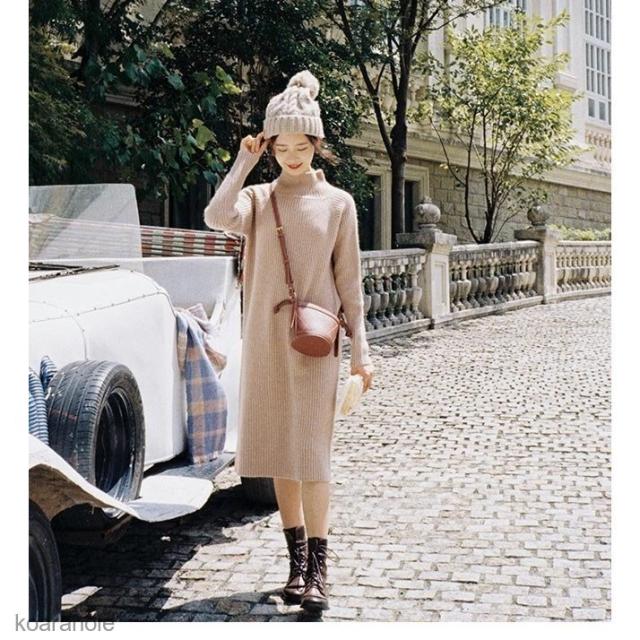 ニットワンピ 厚手 レディース ニットワンピース ミディアム丈 ワンピース ゆったり オフィス 長袖ワンピース 冬 秋 膝丈ワンピース シンプル