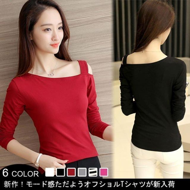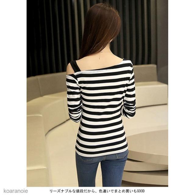 オフショルダーTシャツ 肩空き レディースTシャツ 長袖Tシャツ オフショル ボーダー柄 長袖 トップス 春秋