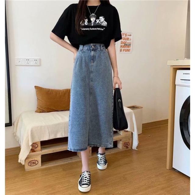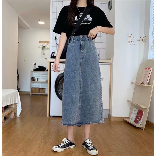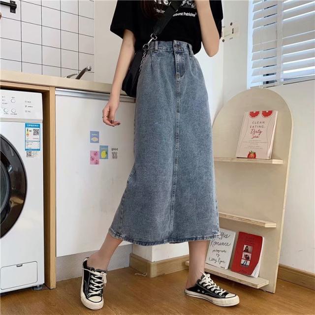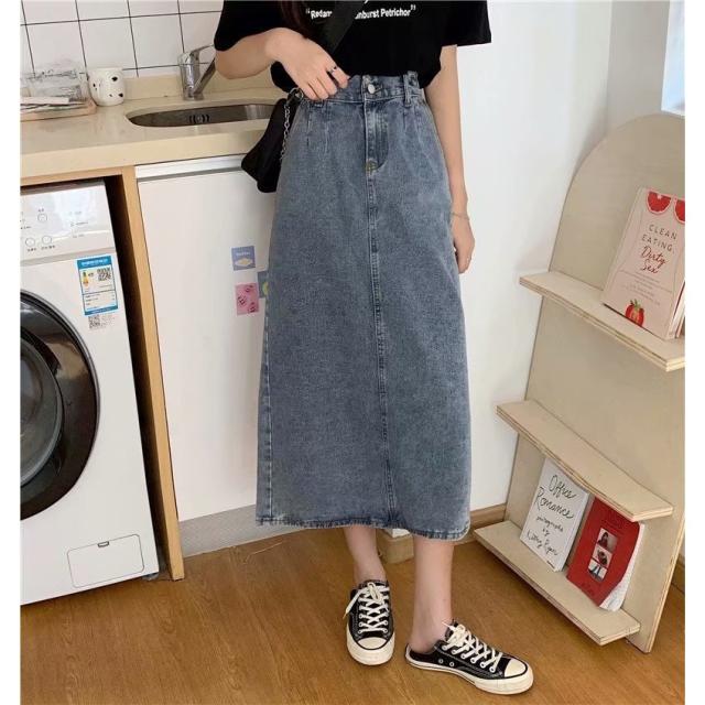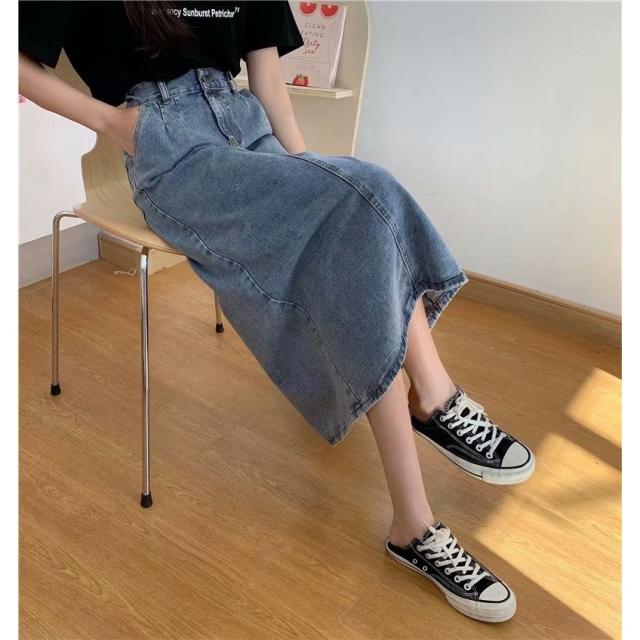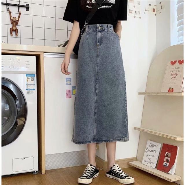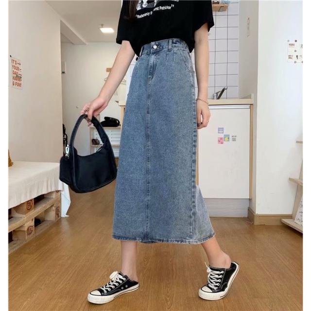 デニムスカート ロング タイト スカート ボトムス ミモレ丈 バックスリット タイトスカート ハイウエスト Iライン M L ブルー 通学