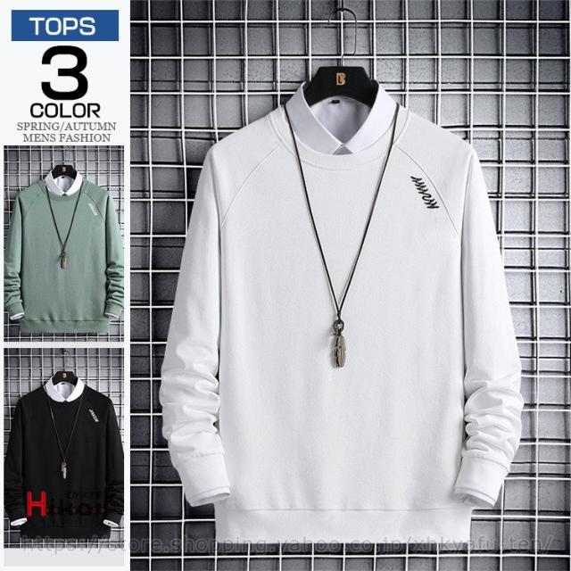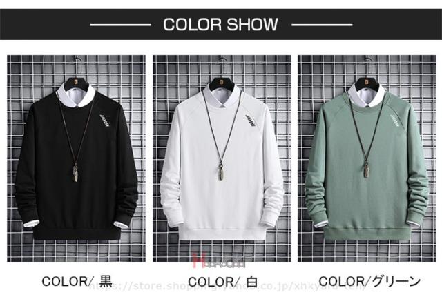スウェット トレーナー メンズ 長袖 クルーネック 無地 トップス 秋服 メンズトレーナー 黒 白 グリーン