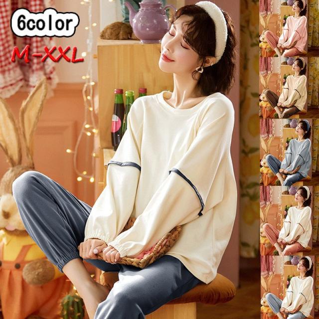 パジャマ レディース 上下セット ルームウェア 長袖 セットアップ 春 女性 寝巻き 部屋着 綿 パジャマ ゆったり 韓国風 寝間着 着心地 おしゃれ