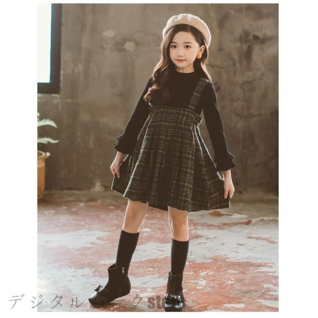 | サイズについての説明 | 子供服 秋冬ワンピース 長袖 セットアップ キッズ 無地 Tシャツ カシュクール+チェック柄ワンピース 女の子 可愛い 女児 暖かい |