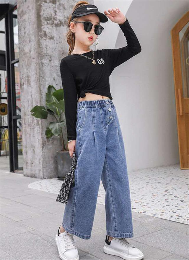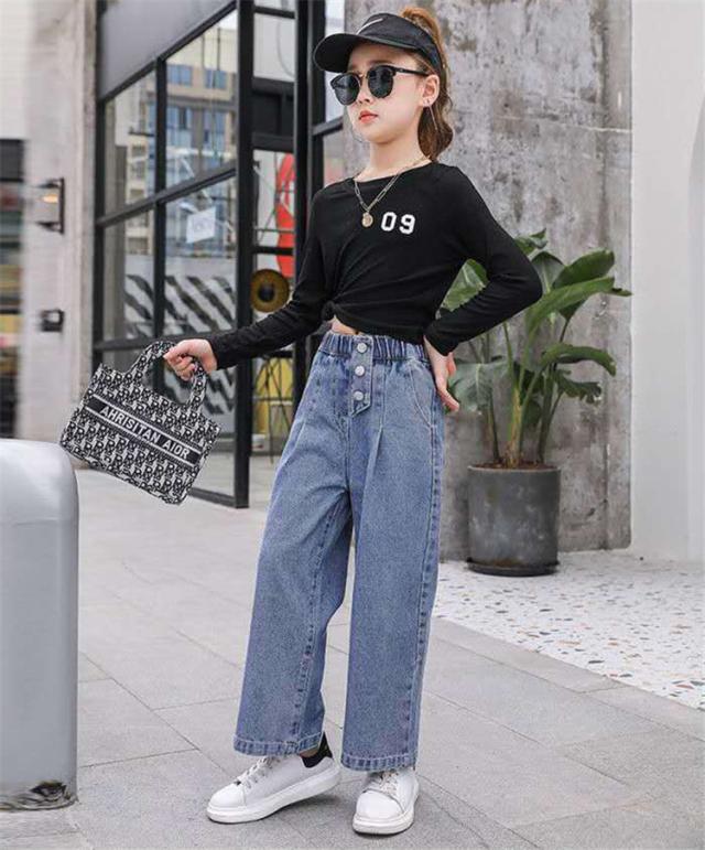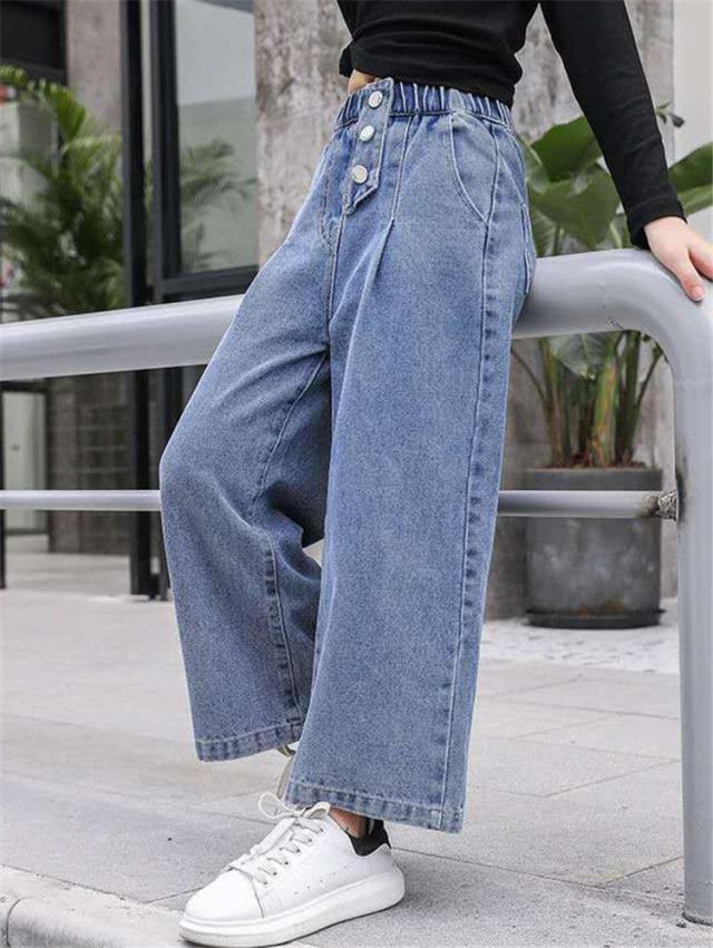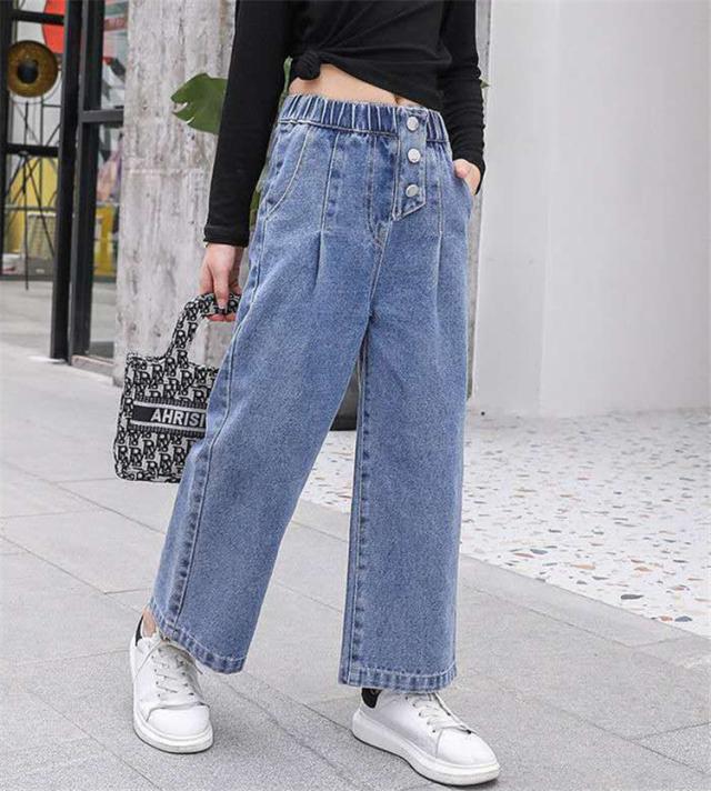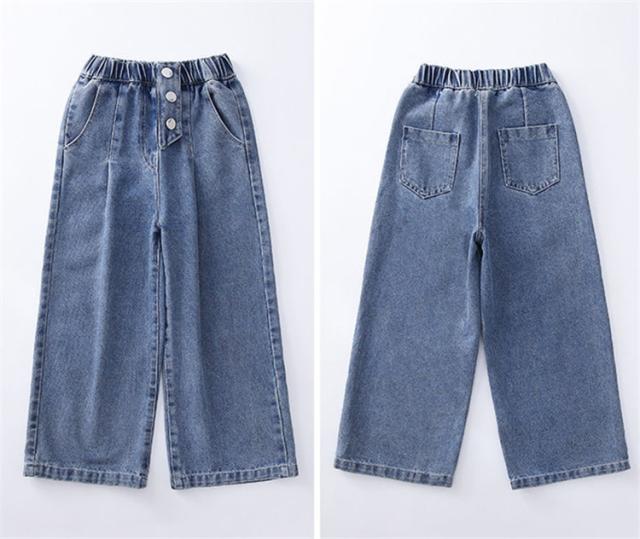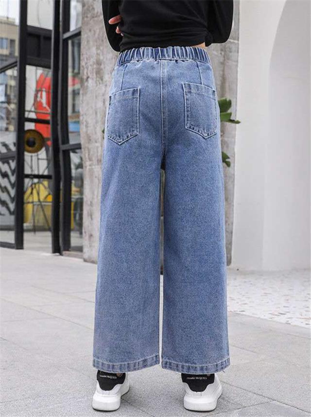 デニムパンツ キッズ 子供服 女の子 ロングパンツ ガウチョパンツ 長ズボン 春服 ボトムス ストレッチパンツ ウェストゴム 伸びる ジーンズ 韓国子供服 おしゃれ