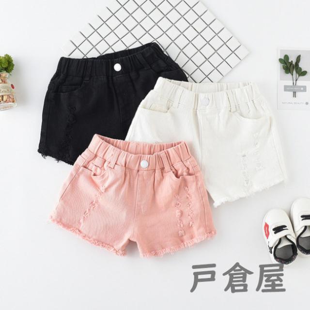 韓国子供服 ジーンズ 女の子 ボトムス ショートパンツ 夏着 キッズ デニムショートパンツ 可愛い 女児 通学 通園 カジュアル パンツ120-170cm