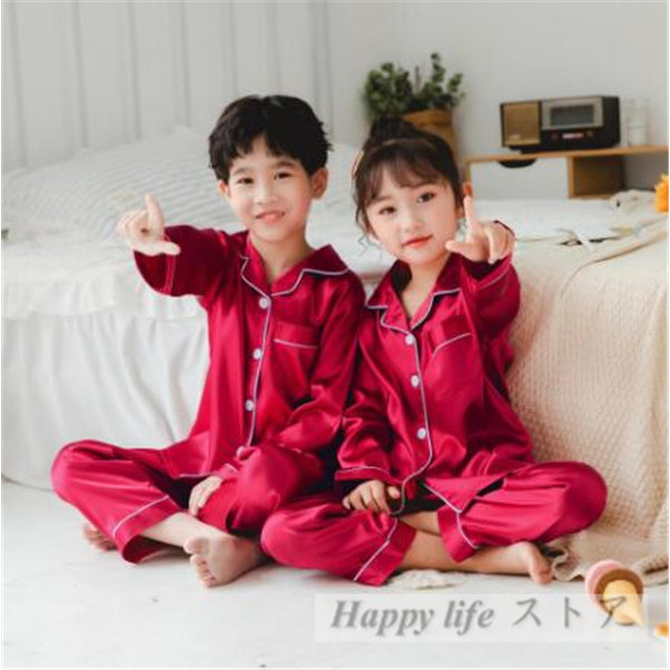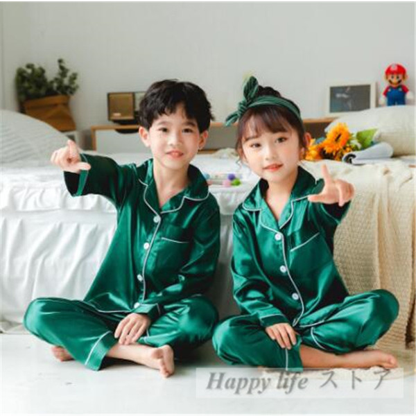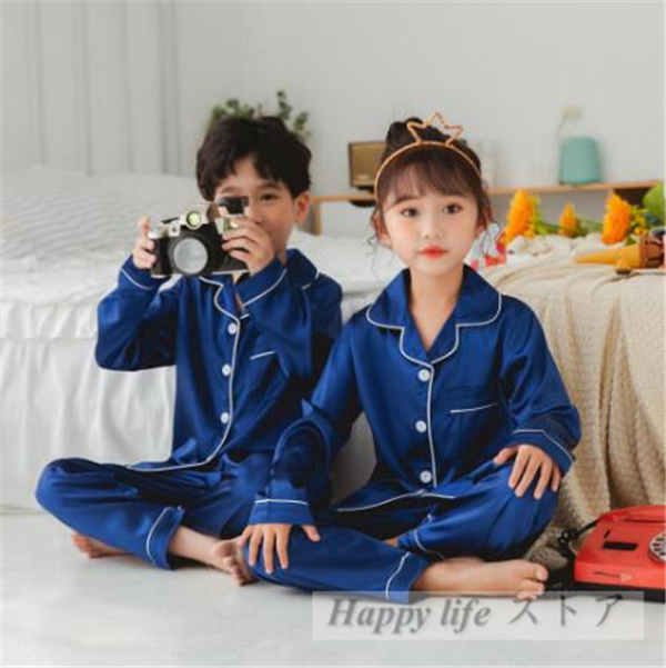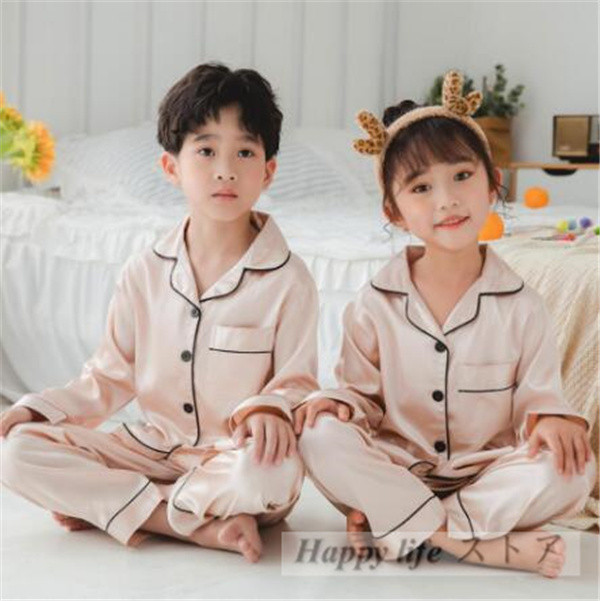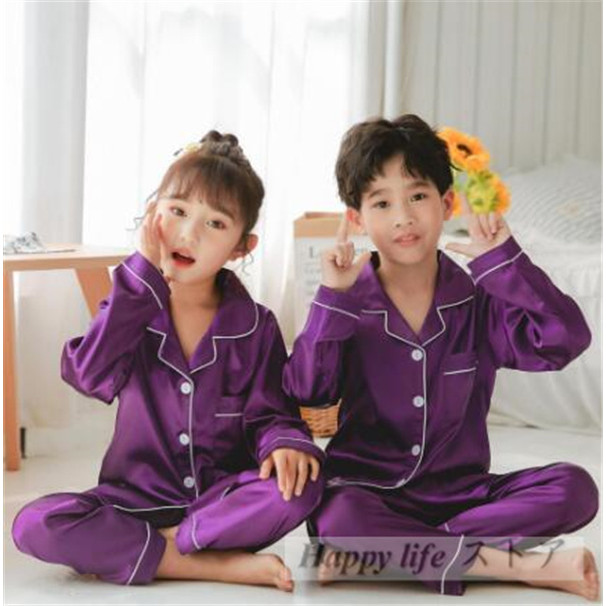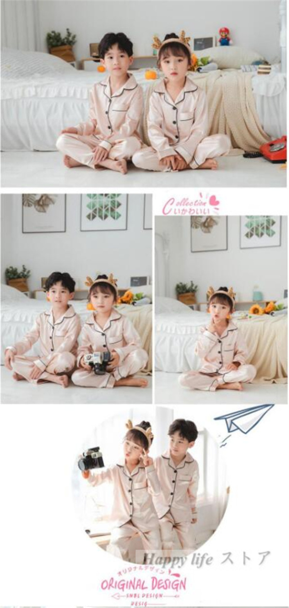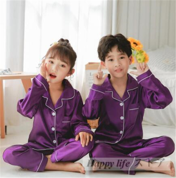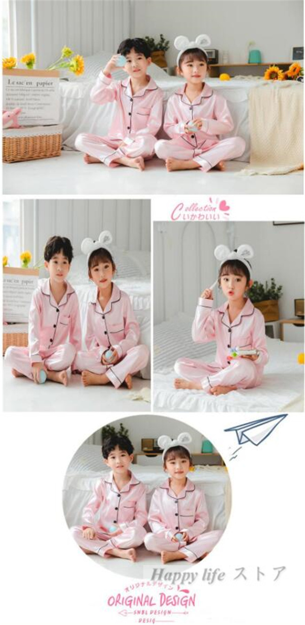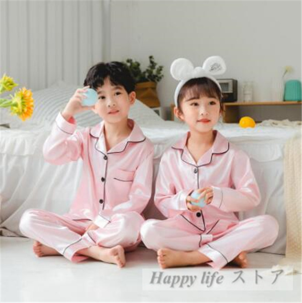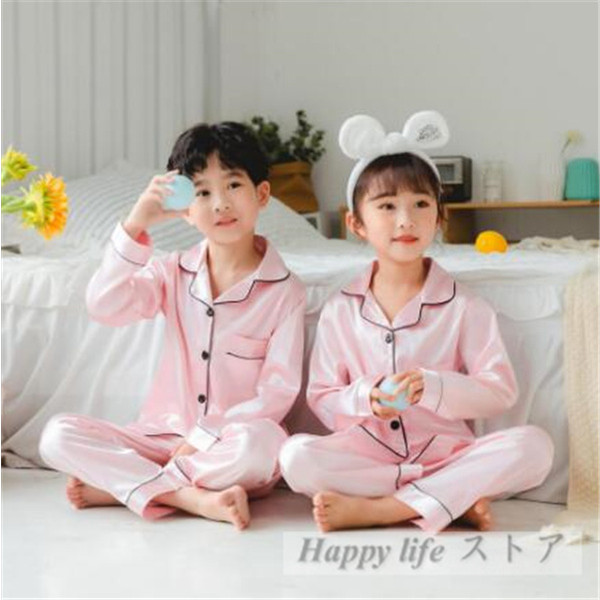 キッズ パジャマ 2点セット 子供パジャマ 女の子 男の子 ベビー 春秋 アイスシルク パジャマ 前開き 長袖 ルームウェア 部屋着 男女兼用 セットアップ 可愛い