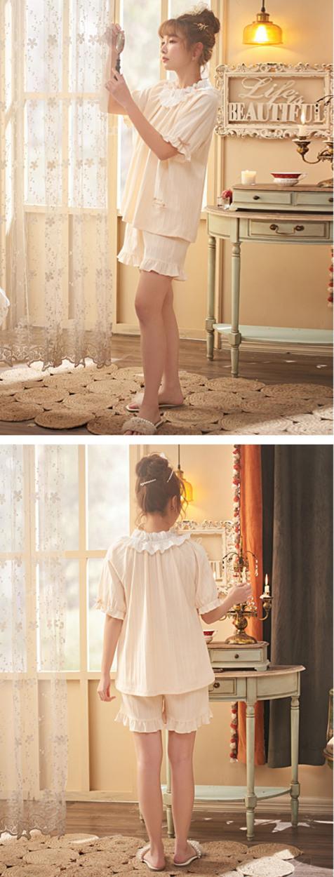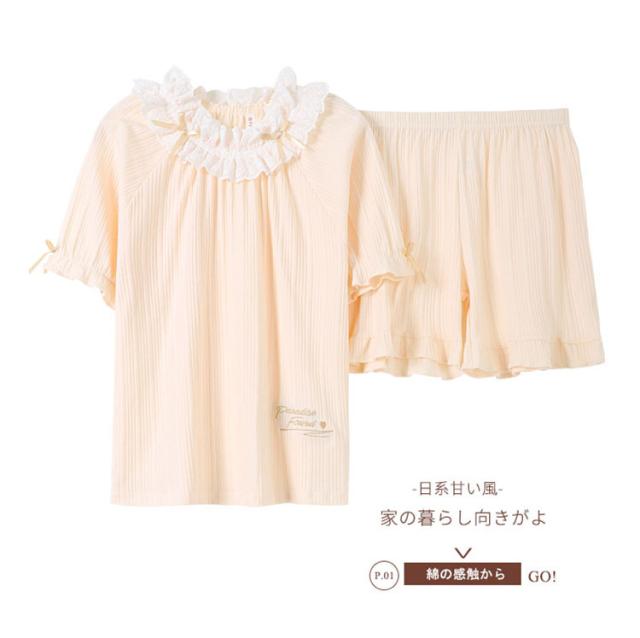 パジャマ レディース 女性 可愛い ルームウェア 部屋着 寝間着 2点セット 夏 寝巻き 半袖 短パン 綿 おしゃれ リラックス ゆったり 丸襟 大人 着心地 人気