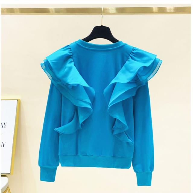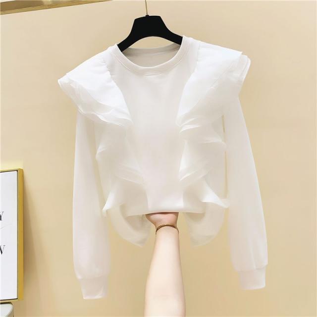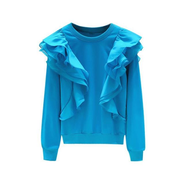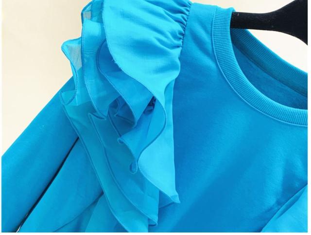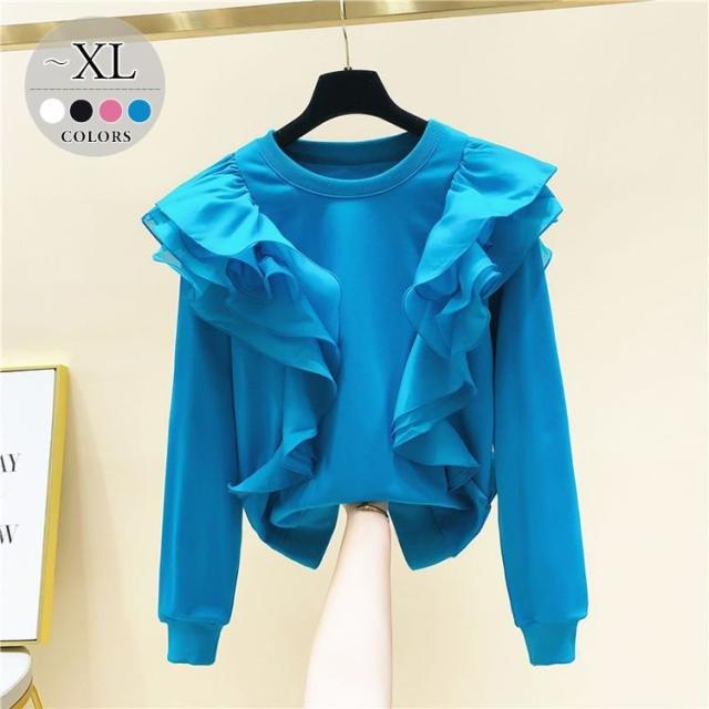 トレーナー トップス ラウンドネック フリル ロマンティック ふんわり 可愛い ミセス お出かけファッション きれいめ 優雅 かわいい お出かけ /[pic78]