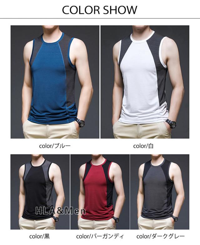 タンクトップ メンズ 冷感Tシャツ ノースリーブ カラー切替 袖なしTシャツ 運動着 部屋着 涼しい 夏服
