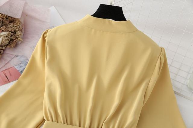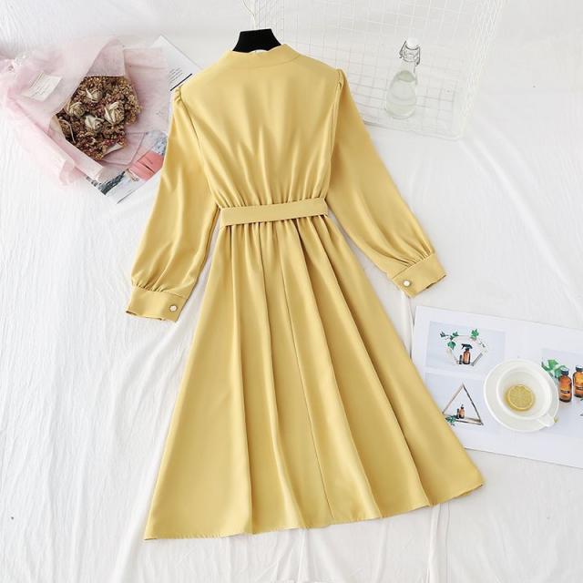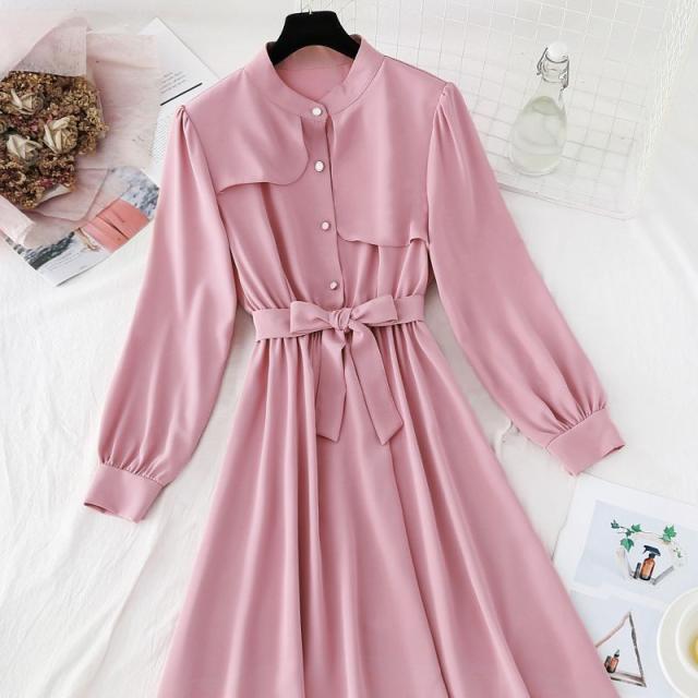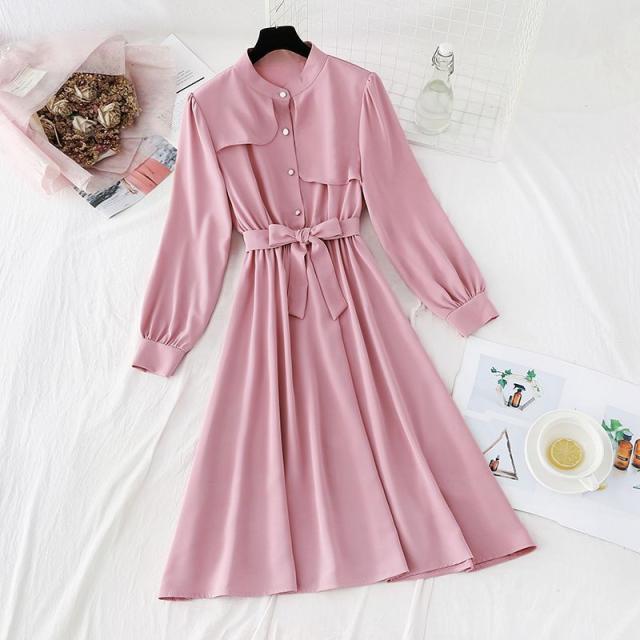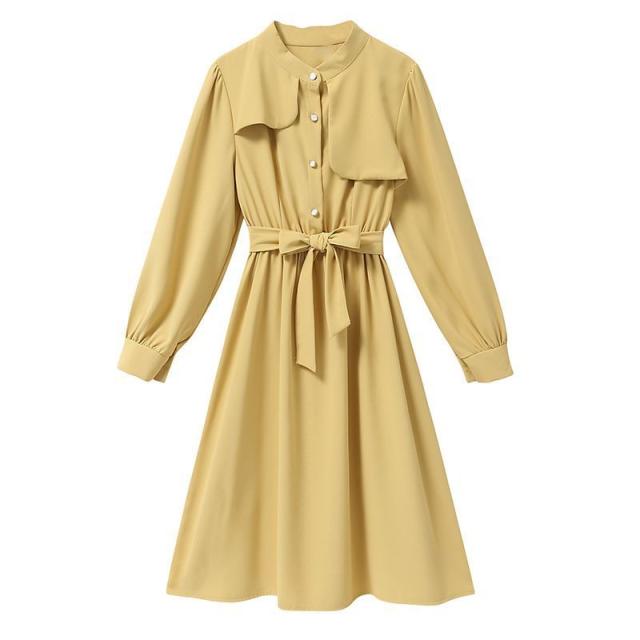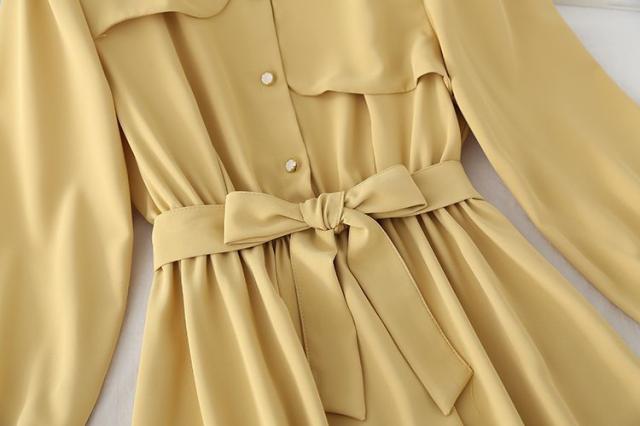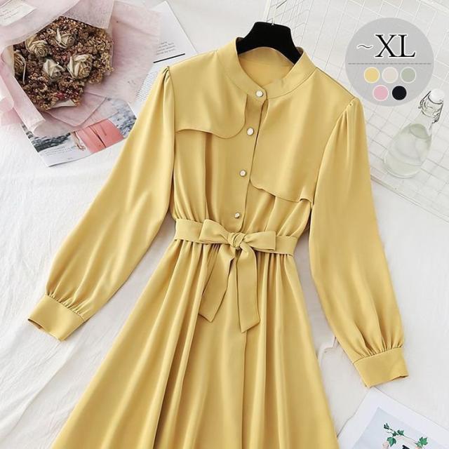 ワンピース ウエストシェイプ ウエストリボン フロントボタン 無地 定番 食事会 休日 ドライブ ディナー 大人 リモート 可愛い /[pie69]