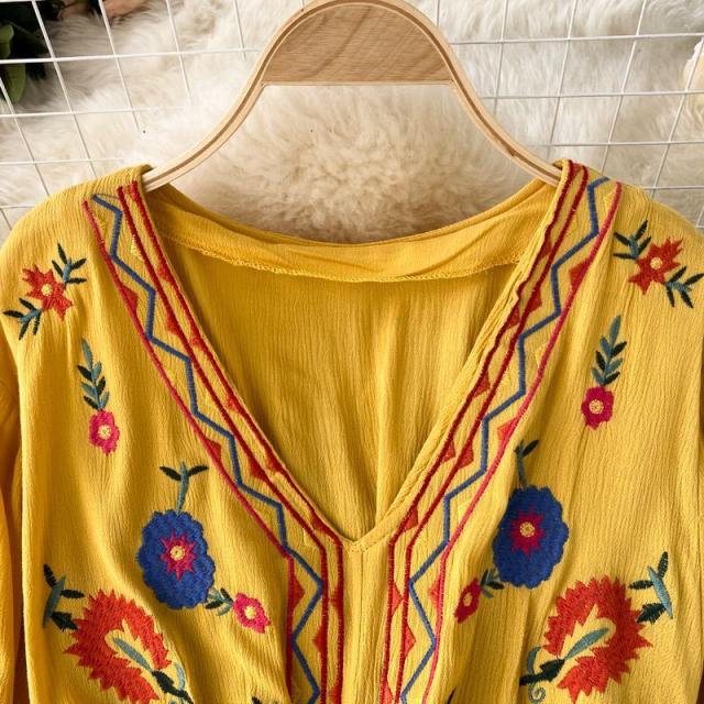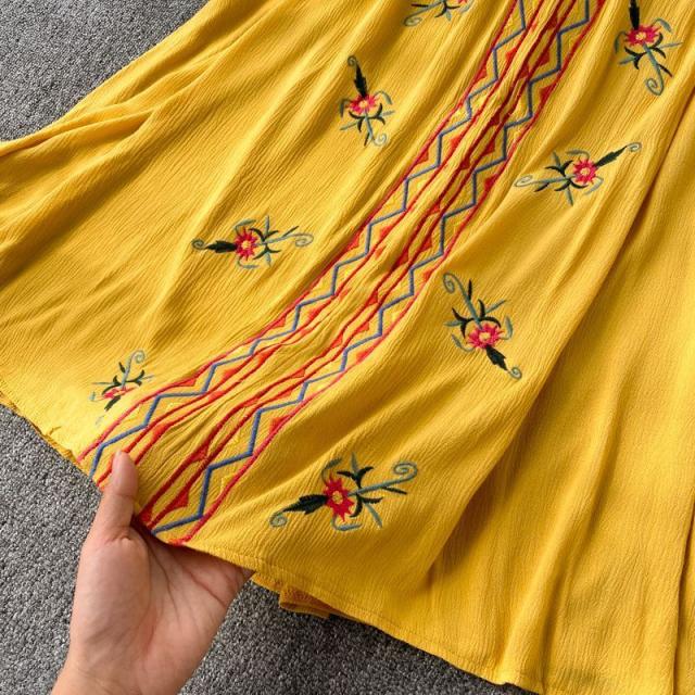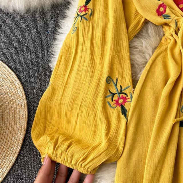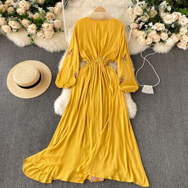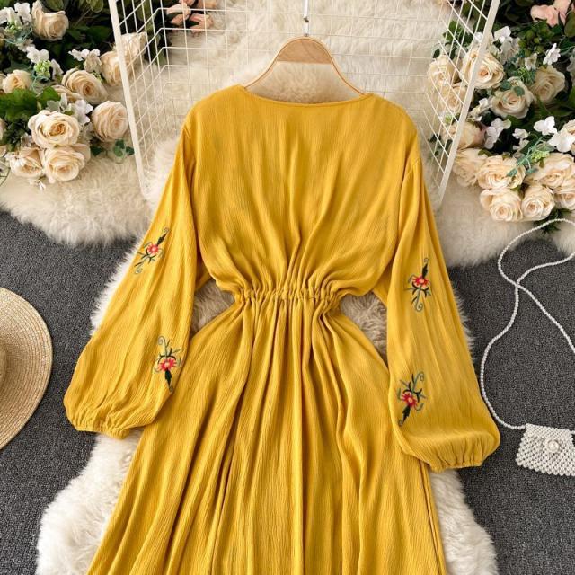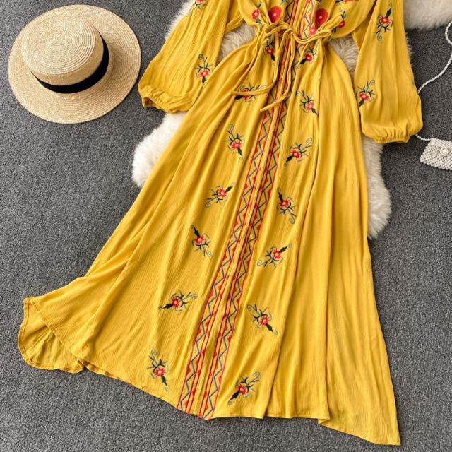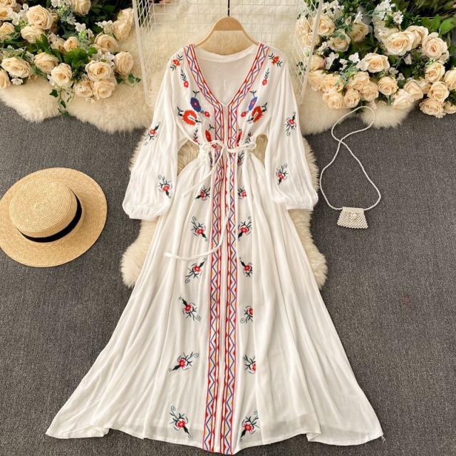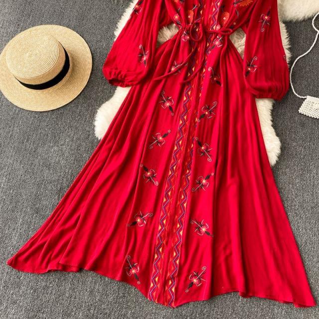 ワンピース 花柄 ウエストリボン 刺繍 エスニックスタイル 2次会 お呼ばれ お出かけ 披露宴 ワインイベント パーティーコーデ 母親 入園式 /[pig22]