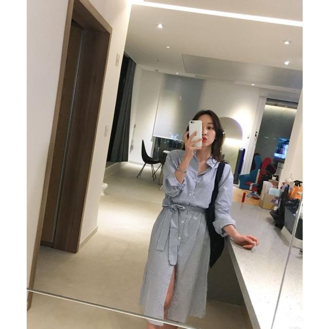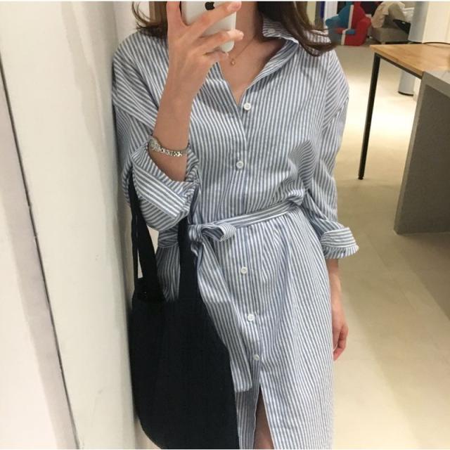 | サイズについての説明 | ストライプが爽やかなシャツワンピース。一枚で着ても羽織りとしてもかわいいアイテムです。 |