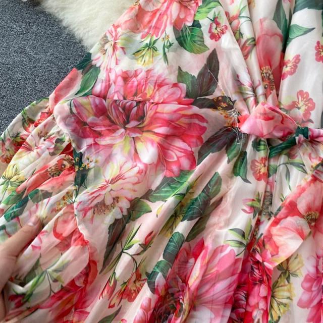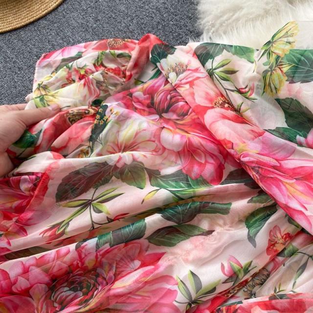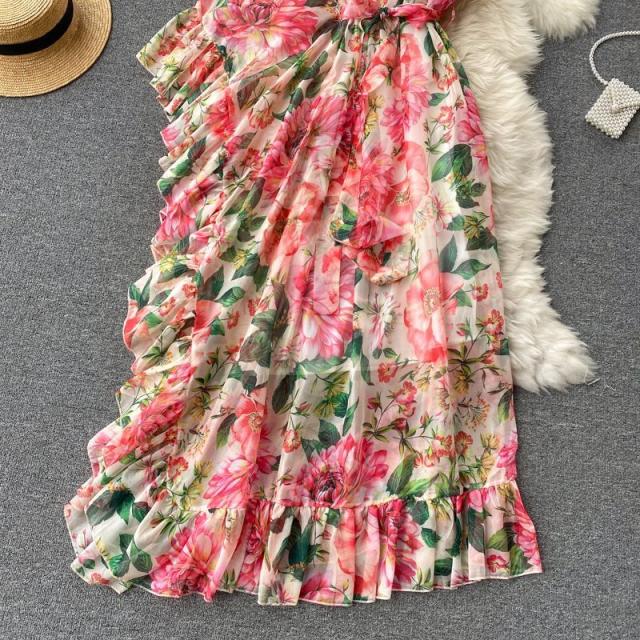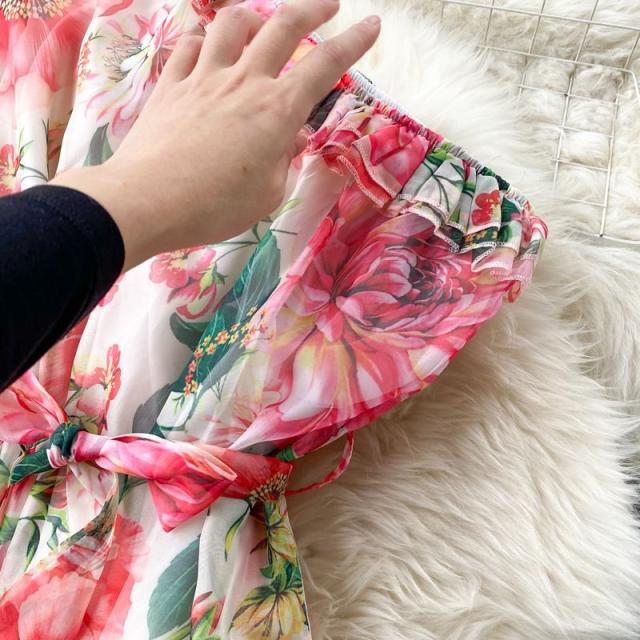 ワンピース 花柄 裾フリル ウエストシェイプ ウエストリボン フリル 総柄プリント 清楚 定番 キレイ目 休日スタイル 可愛い 母親 デート /[pii01]