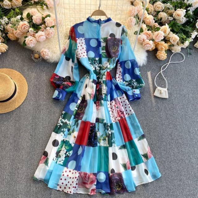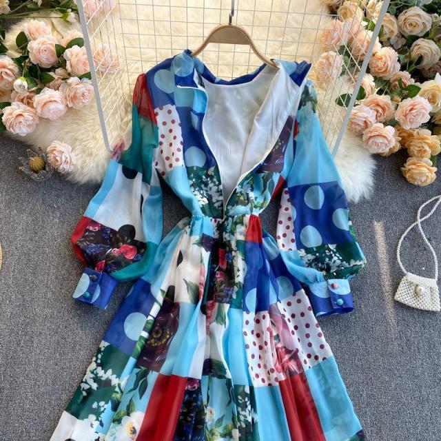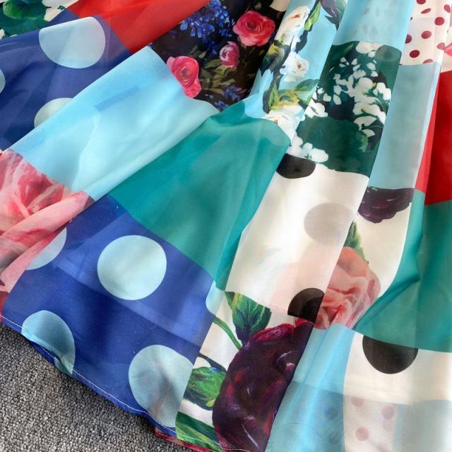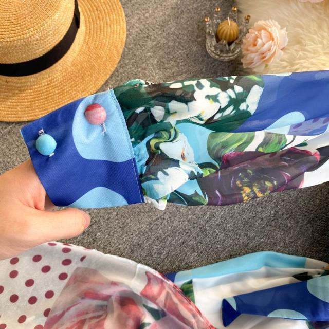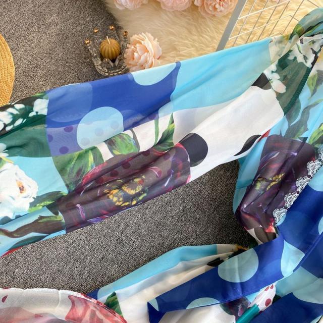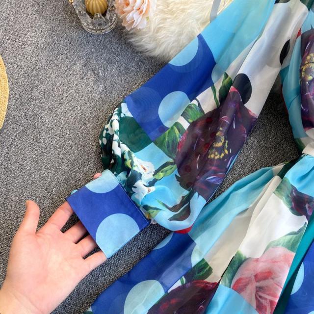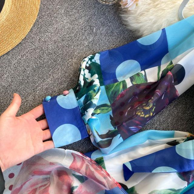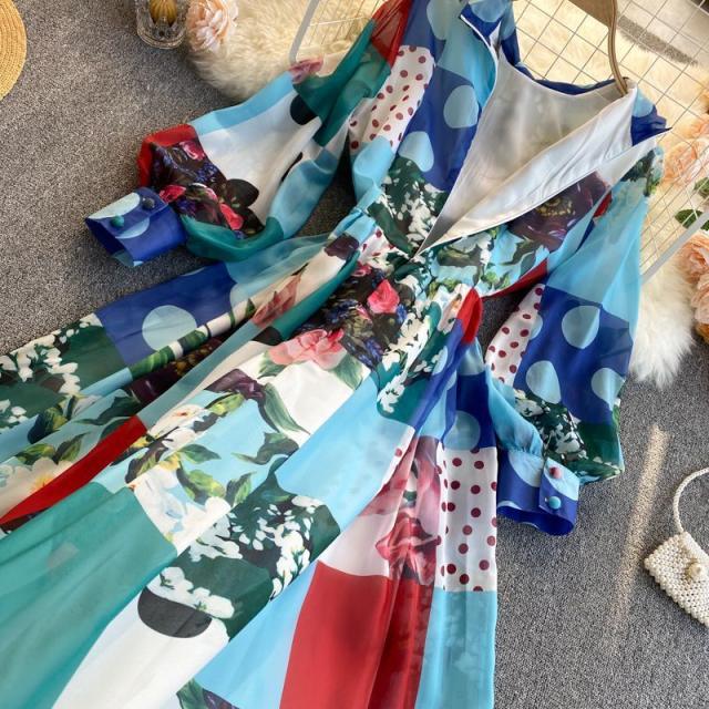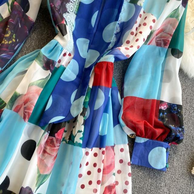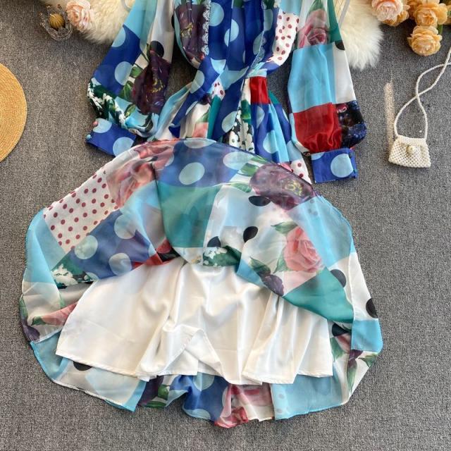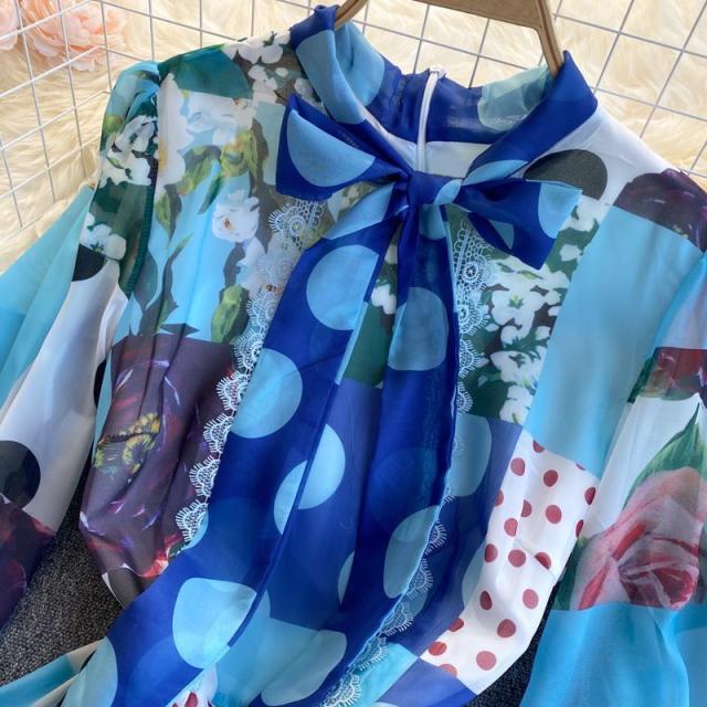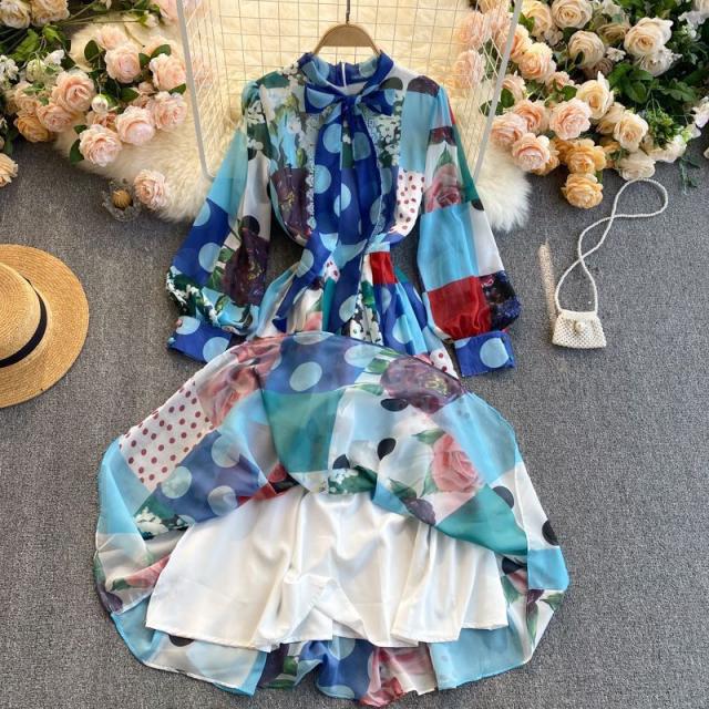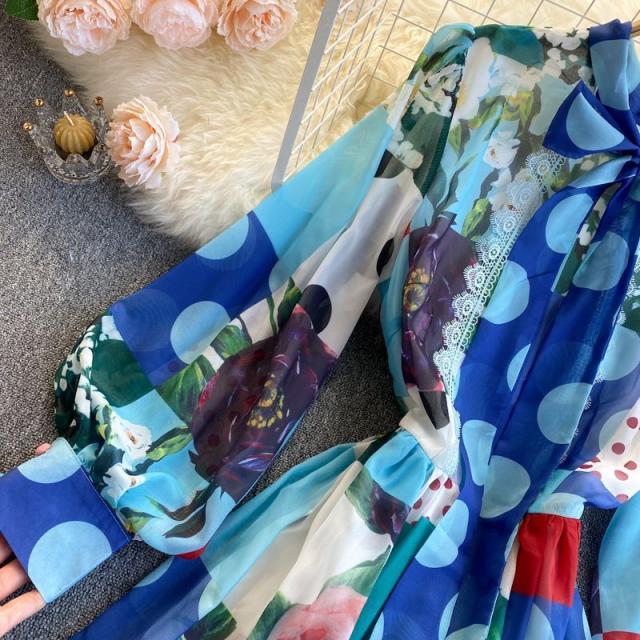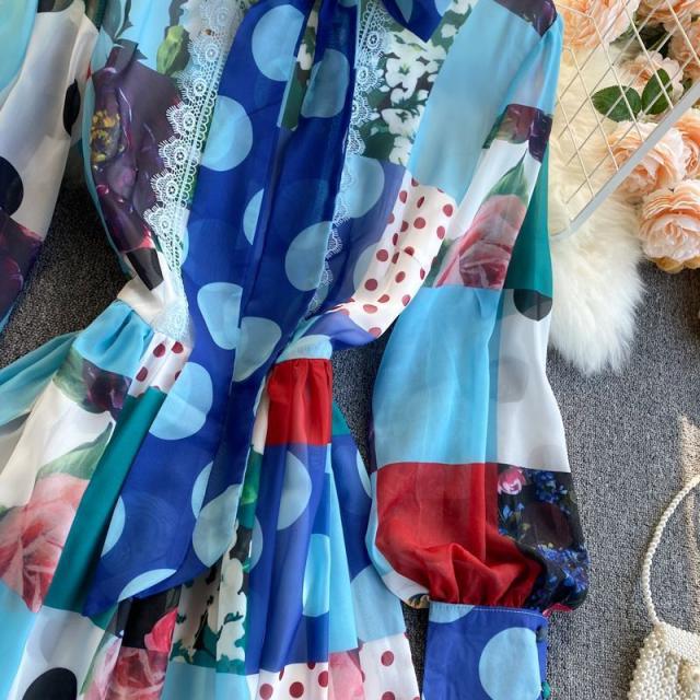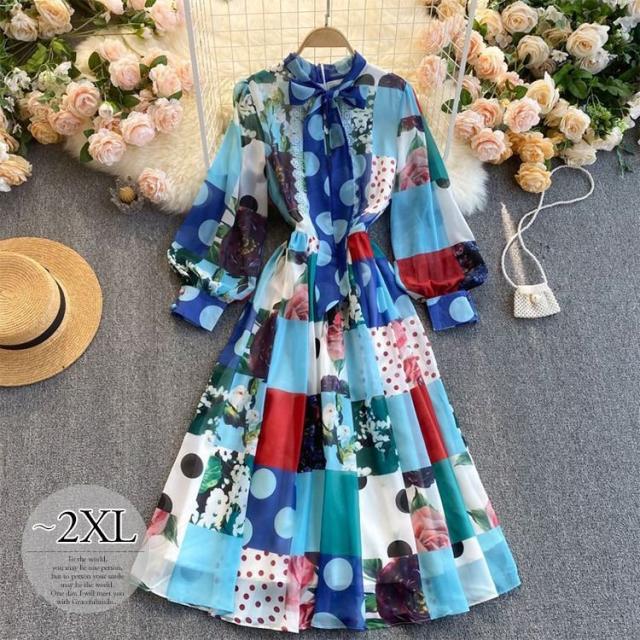 ワンピース 水玉 花柄 レース 総柄プリント 胸元リボン かわいい 学校行事 ドライブ 女子旅 女子会 リゾート お出かけファッション /[pii13]