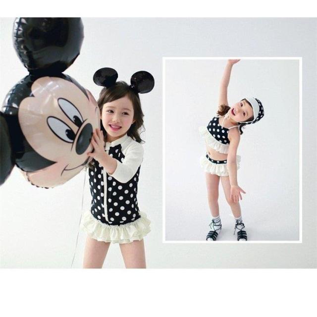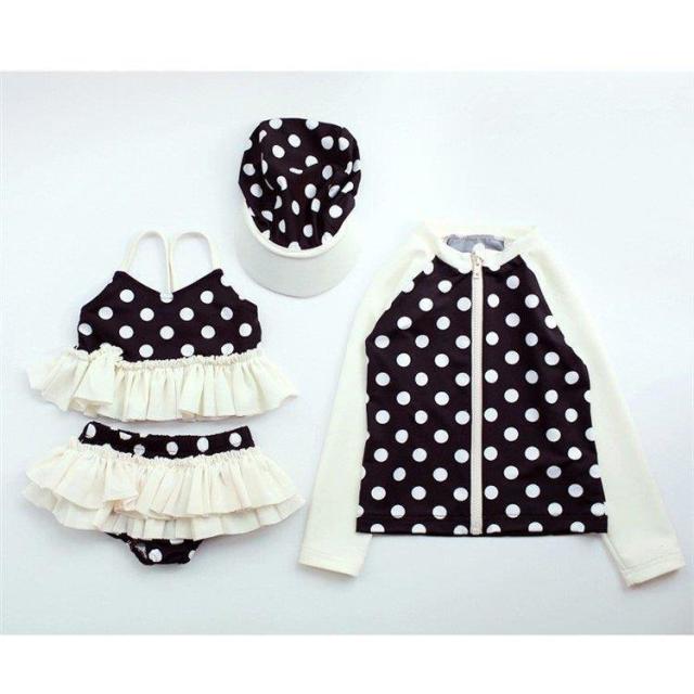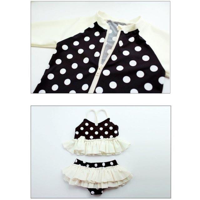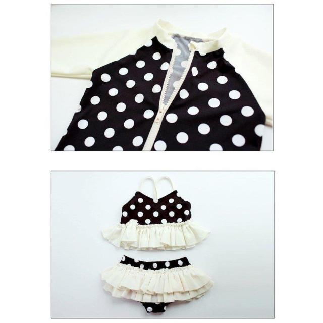 水着 女の子 キッズ ラッシュガード ドット柄 子供 セパレート 新作水着 子ども スイムウェア 上下セット 4点セットUV対策長袖水着 スクール水着