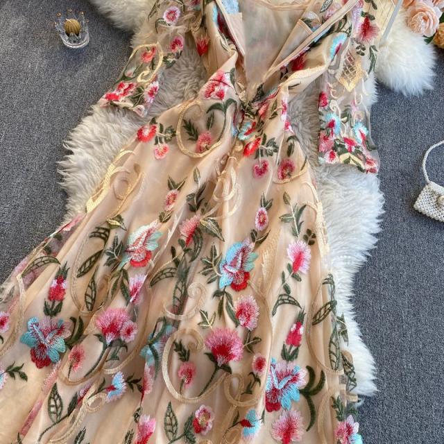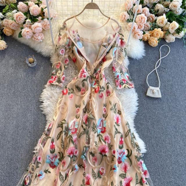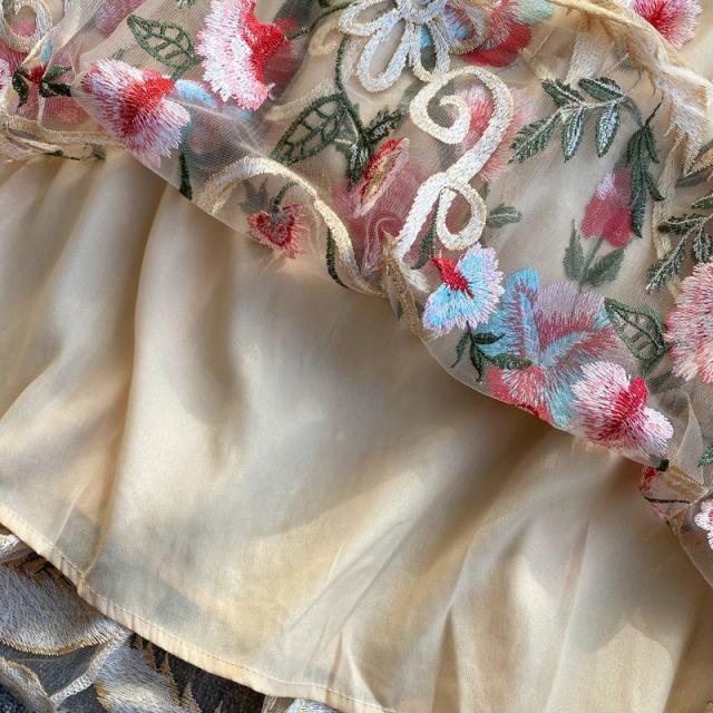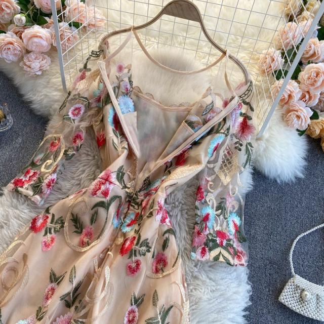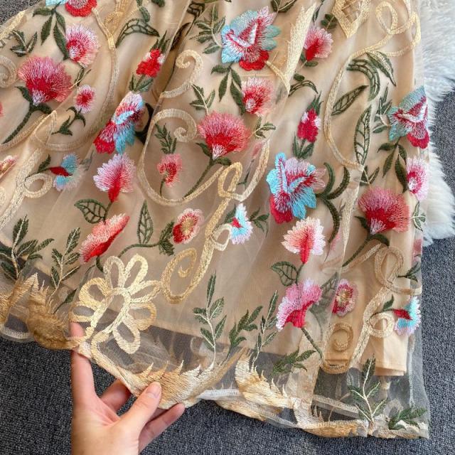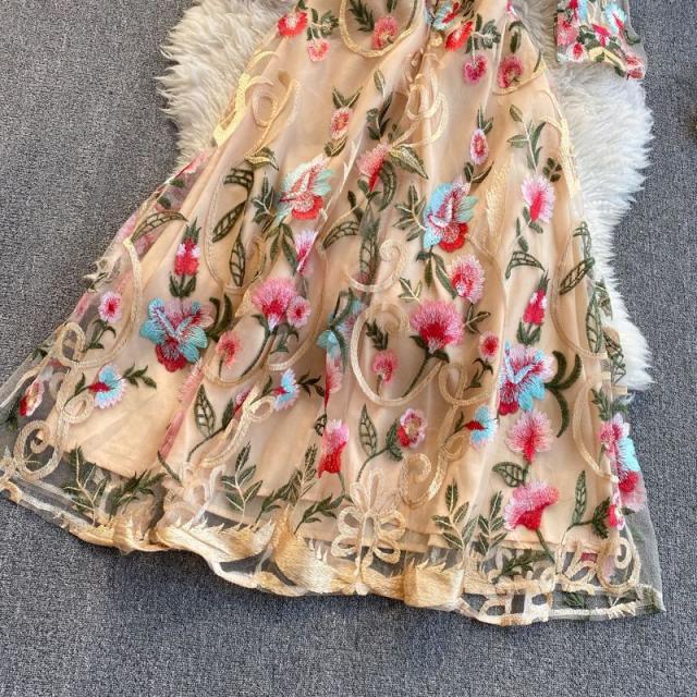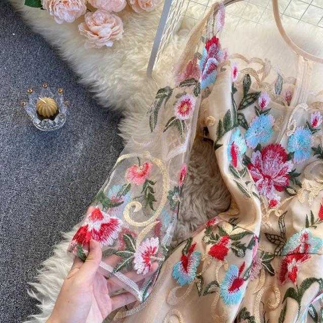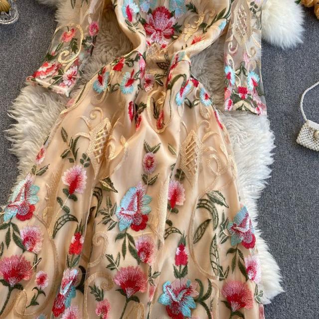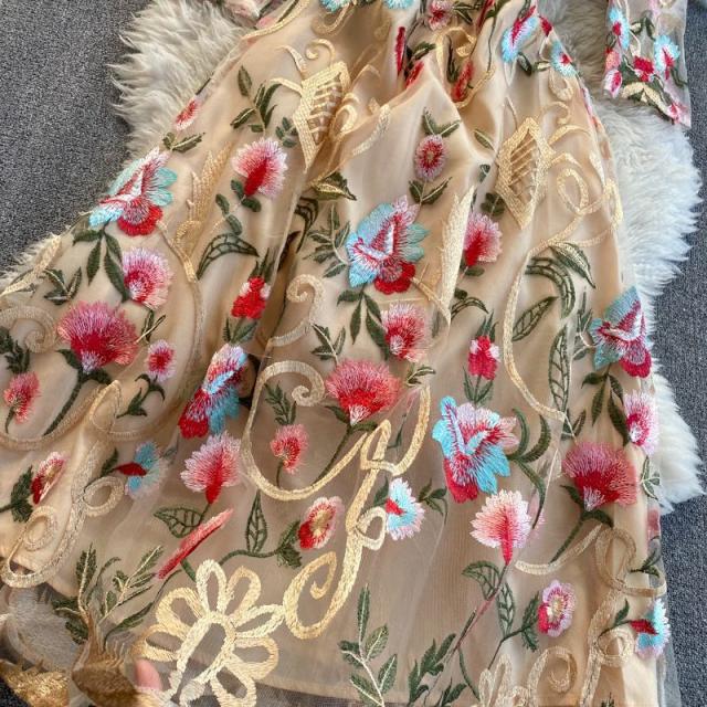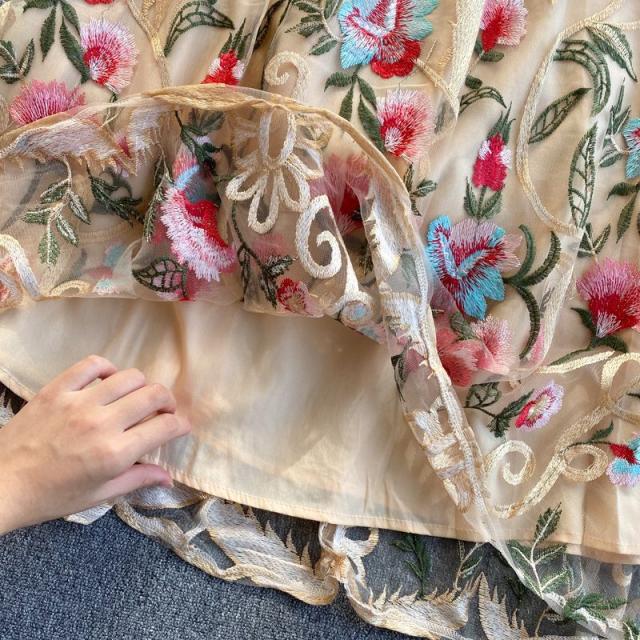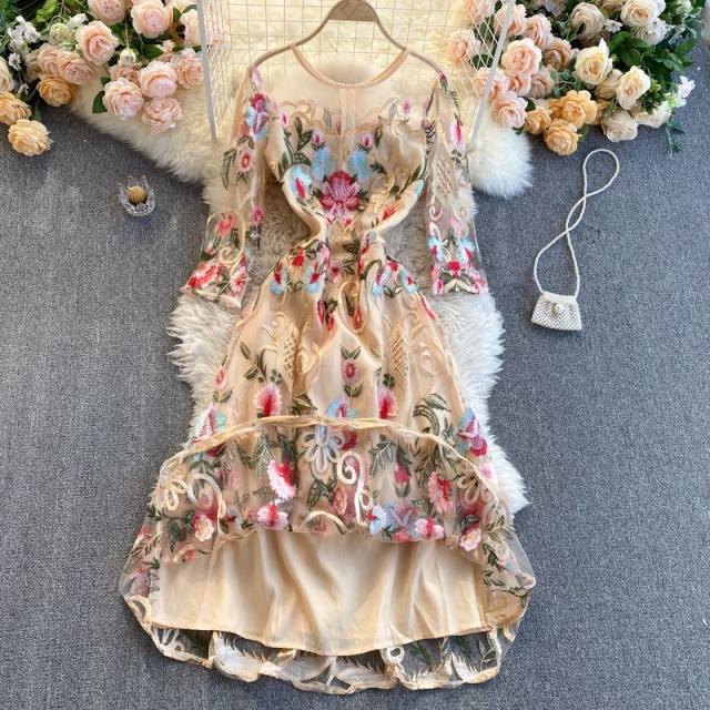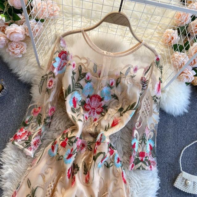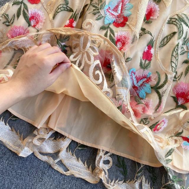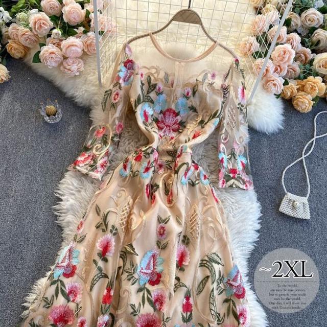 ワンピース ラウンドネック 花柄 透け感 ファスナー 刺繍 フェミニン 華やか 母親 お出かけ ドライブ ミセス リゾート 休日 女子会 女子旅 /[pii34]
