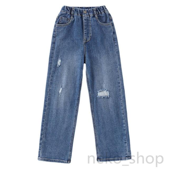 キッズ服 女の子 デニム ロングパンツ 無地 韓国子供服 可愛い おしゃれ ジーンズ ジーパン ボトムス 春秋夏
