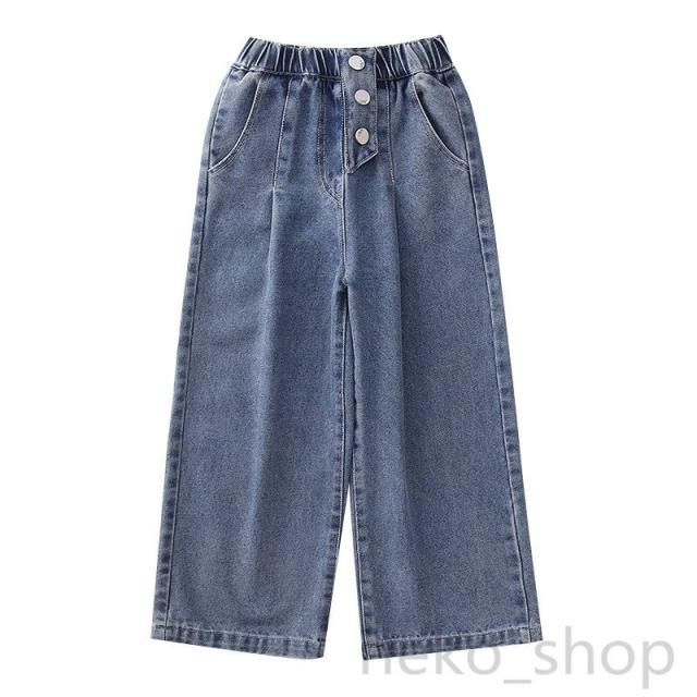 キッズ服 女の子 デニム ロングパンツ 無地 韓国子供服 可愛い おしゃれ ジーンズ ジーパン ボトムス 春秋夏