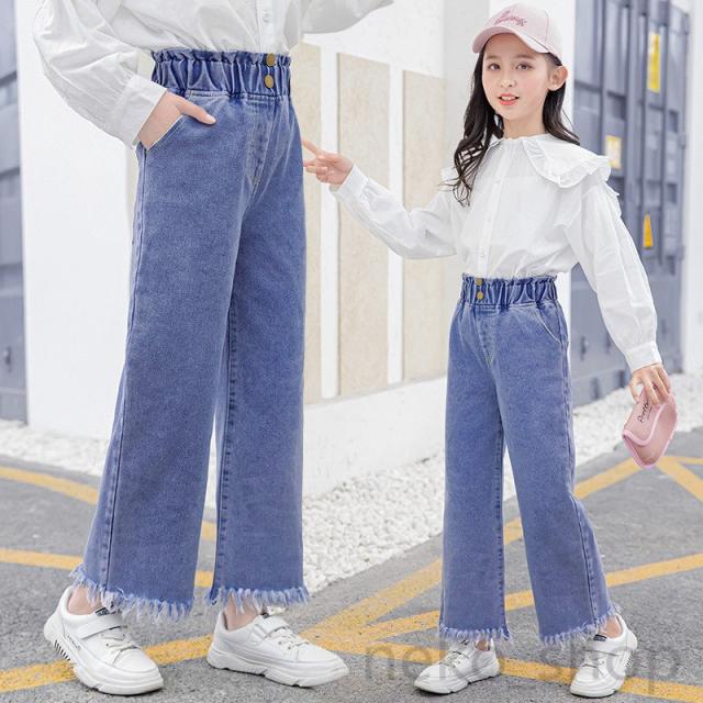 キッズ服 女の子 デニム ロングパンツ 無地 韓国子供服 可愛い おしゃれ ジーンズ ジーパン ボトムス 春秋夏