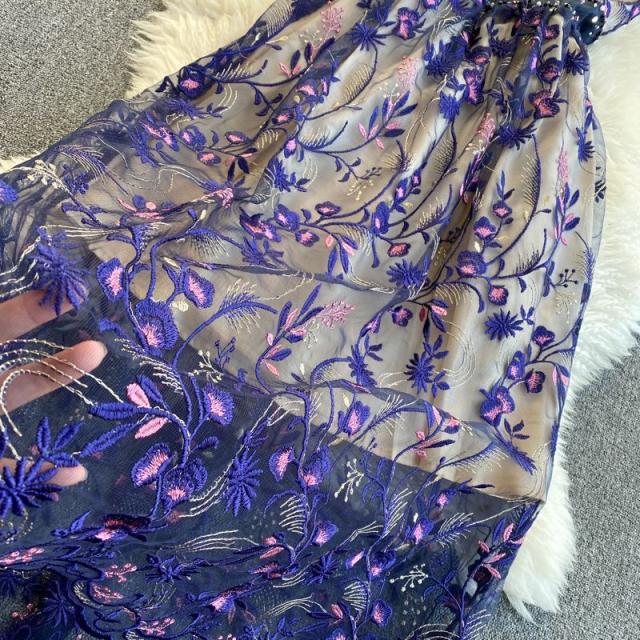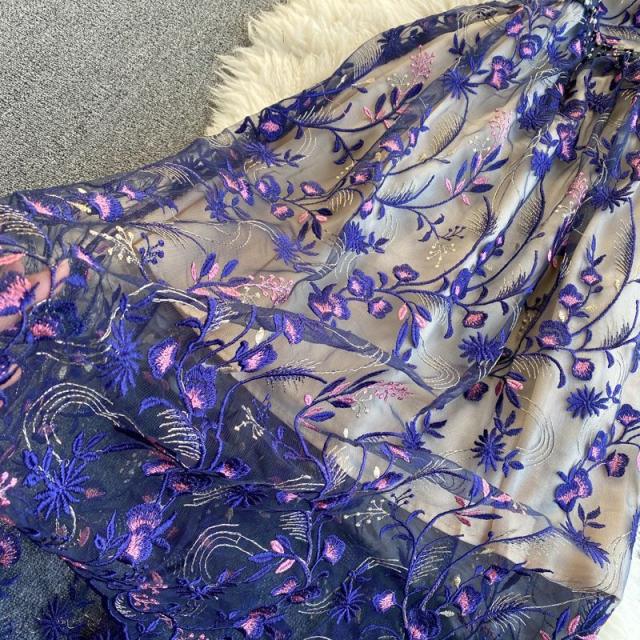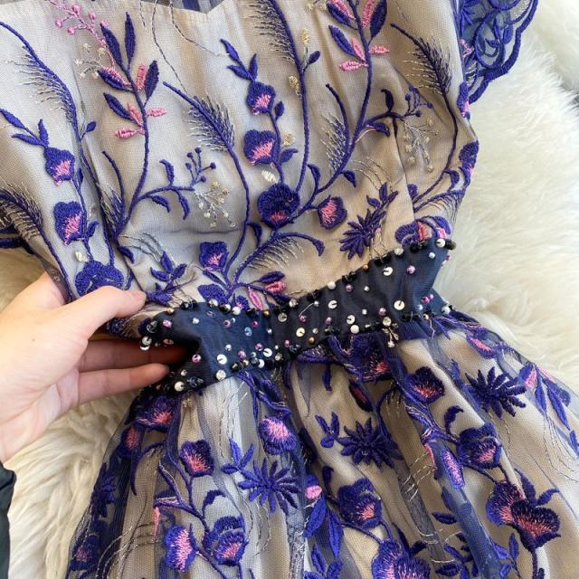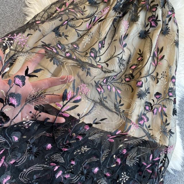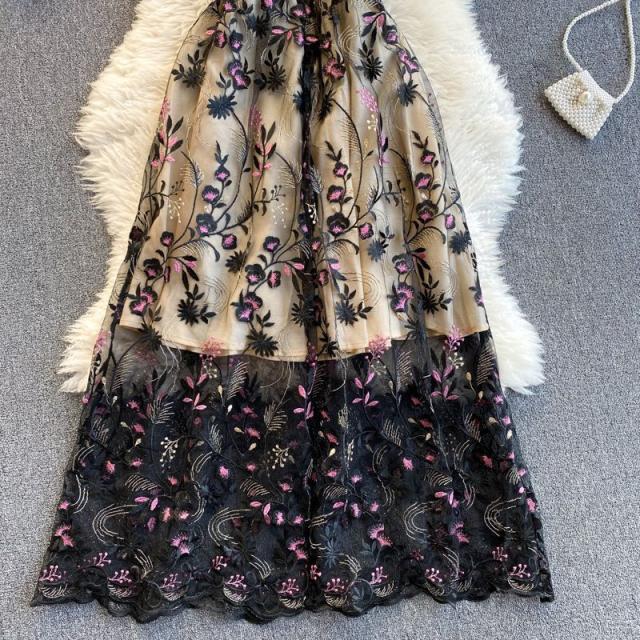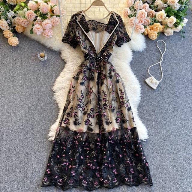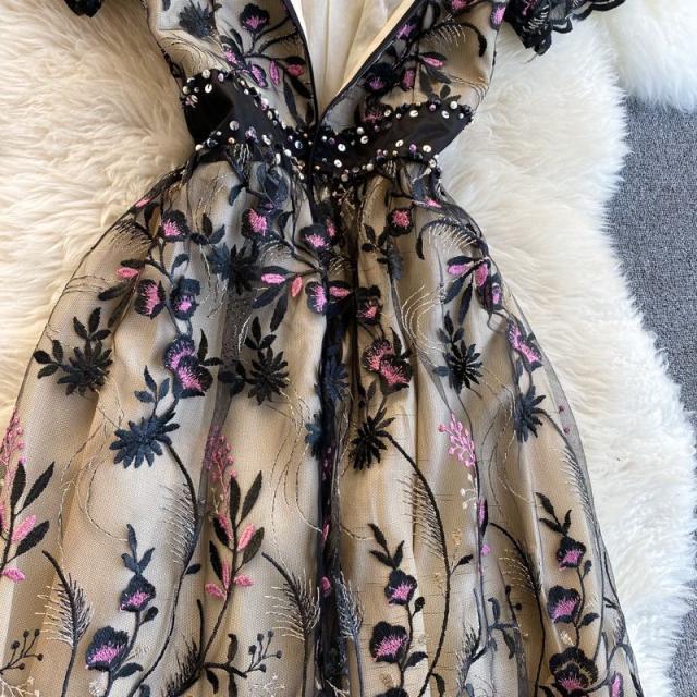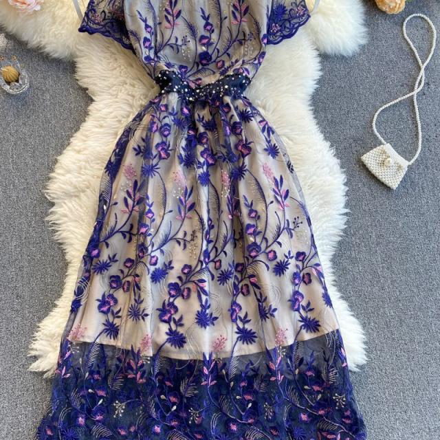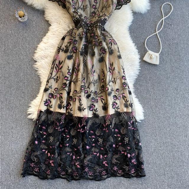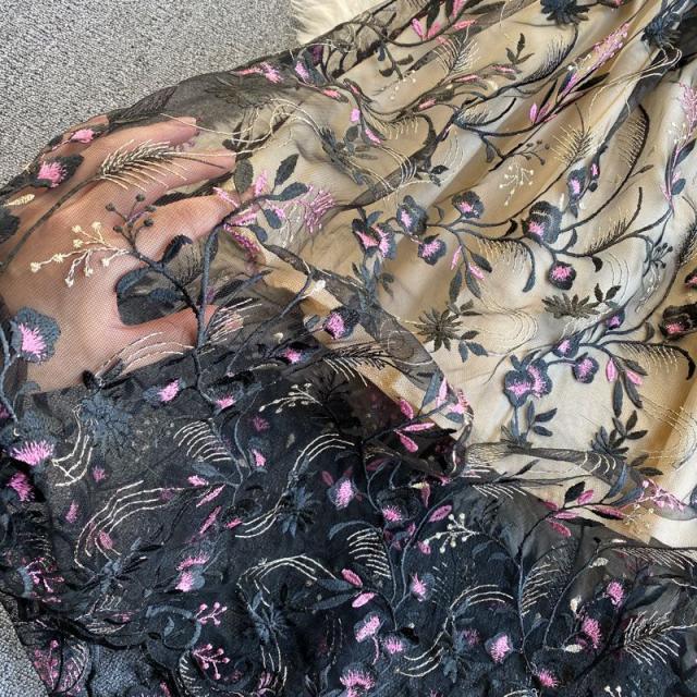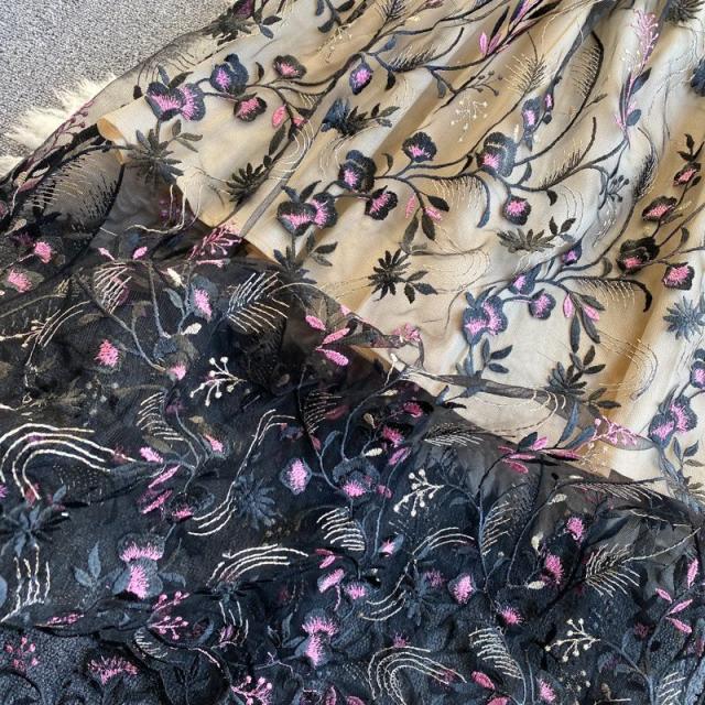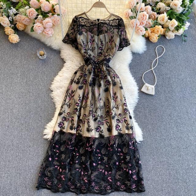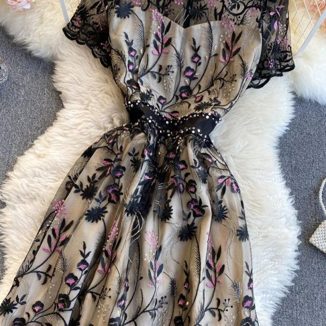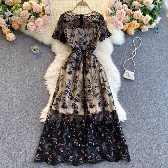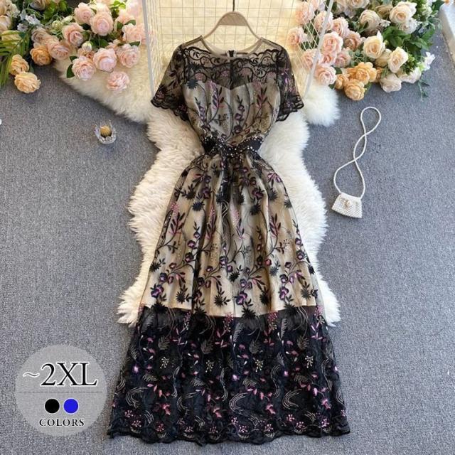 ワンピース 総柄 透け感 レース ウエストリボン 刺繍 クラシカル 女子会 学校行事 休日スタイル 定番 かわいい ディナー リモート 女子旅 /[pii56]