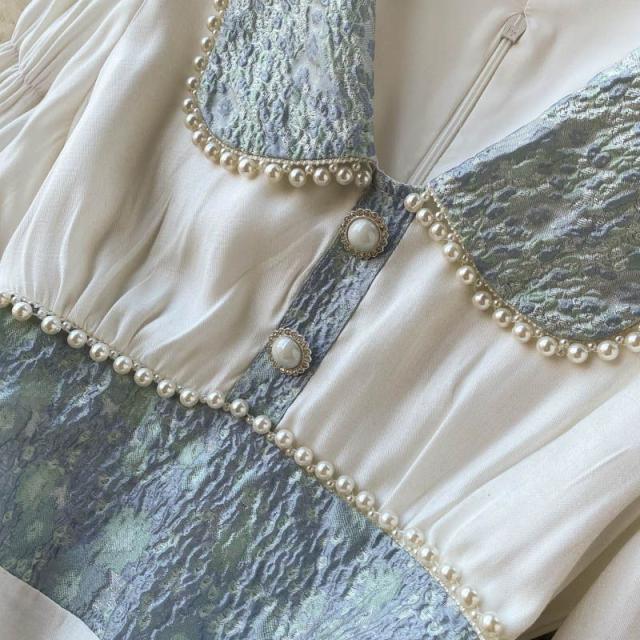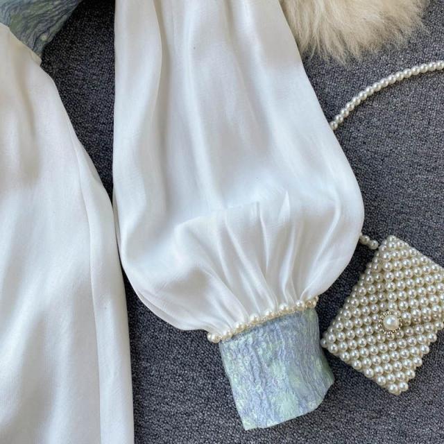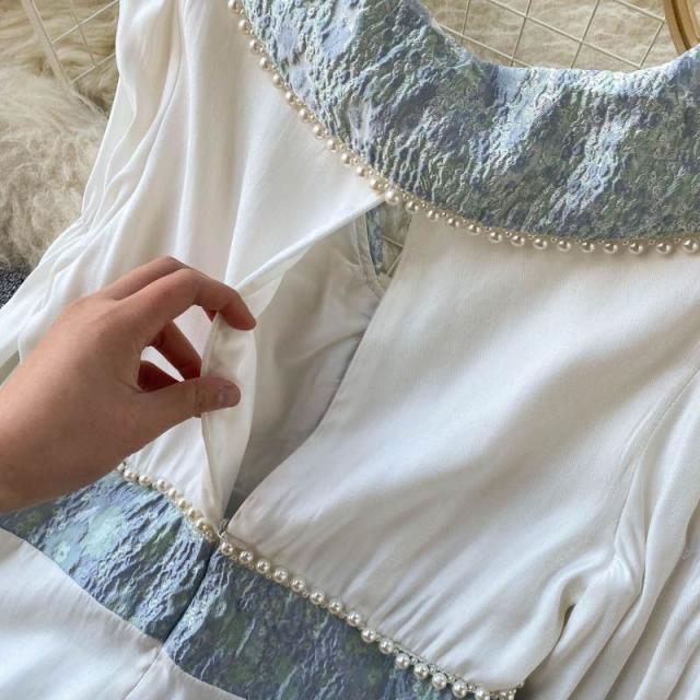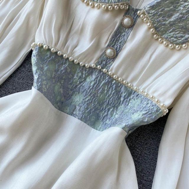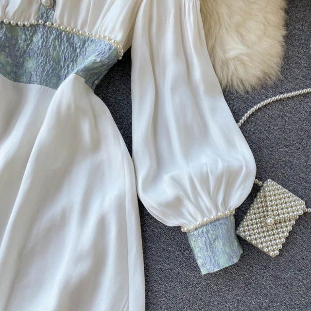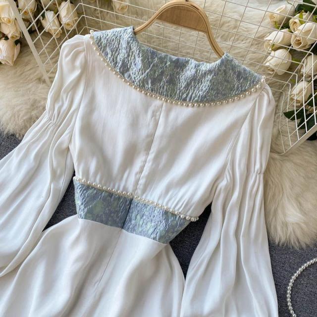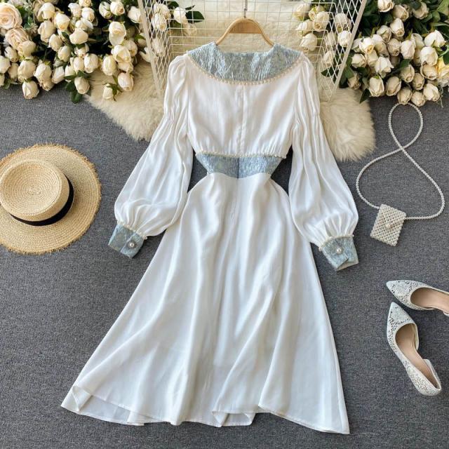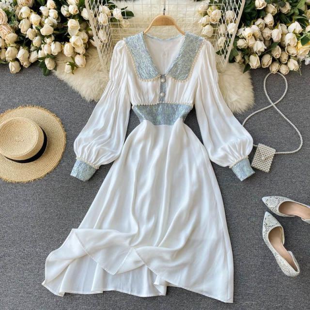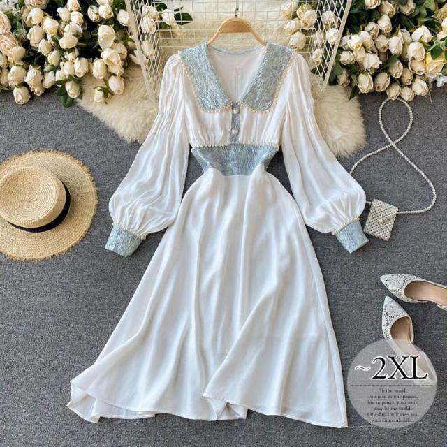 ワンピース 襟付き 袖ゆったり ウエストシェイプ ウエストマーク 大きめ襟 パールボタン 大人 食事会 かわいい 母親 学校行事 清楚 お出かけ /[pii58]