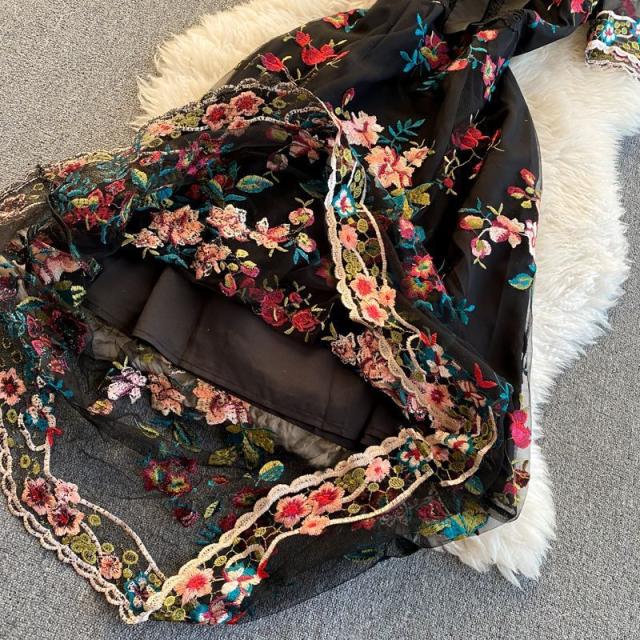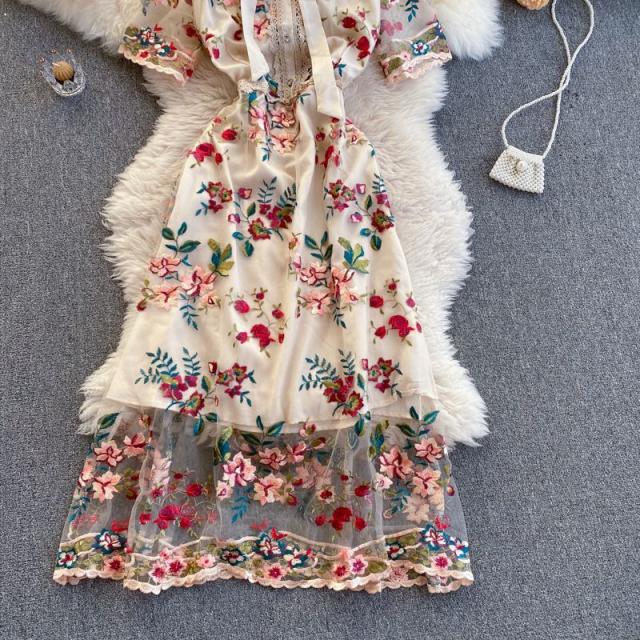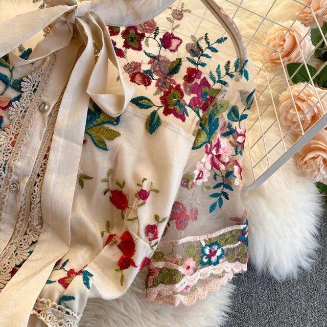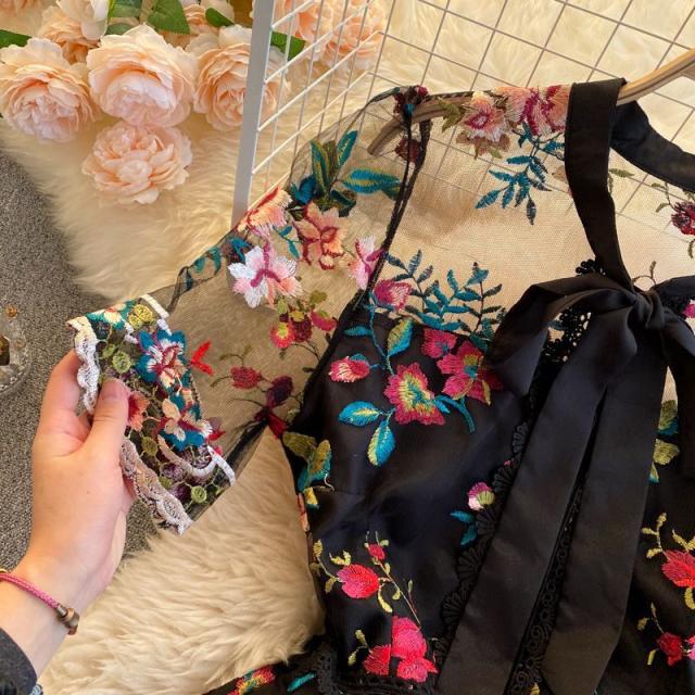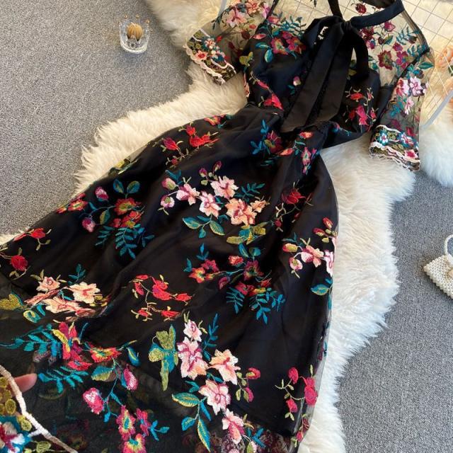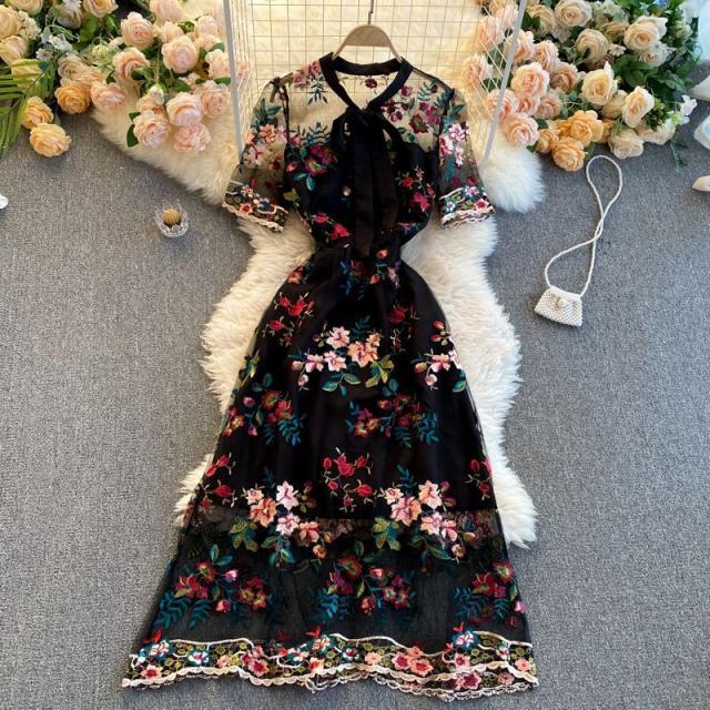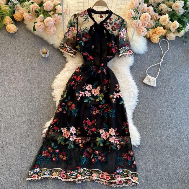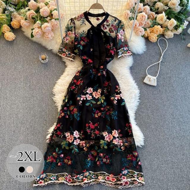 ワンピース 花柄 総柄 レース 透け感 胸元リボン ロマンチック お出かけファッション 女子旅 定番 食事会 ミセス 休日スタイル 大人 /[pii61]